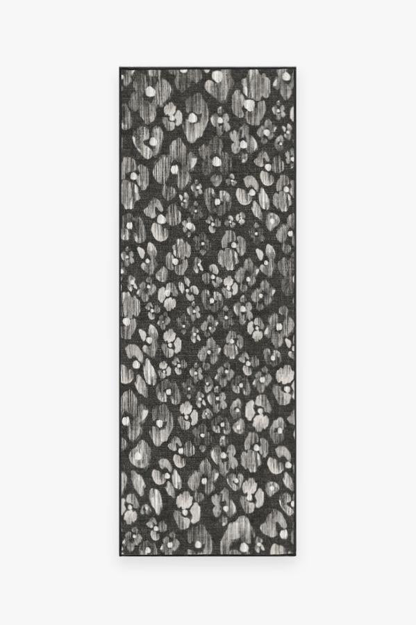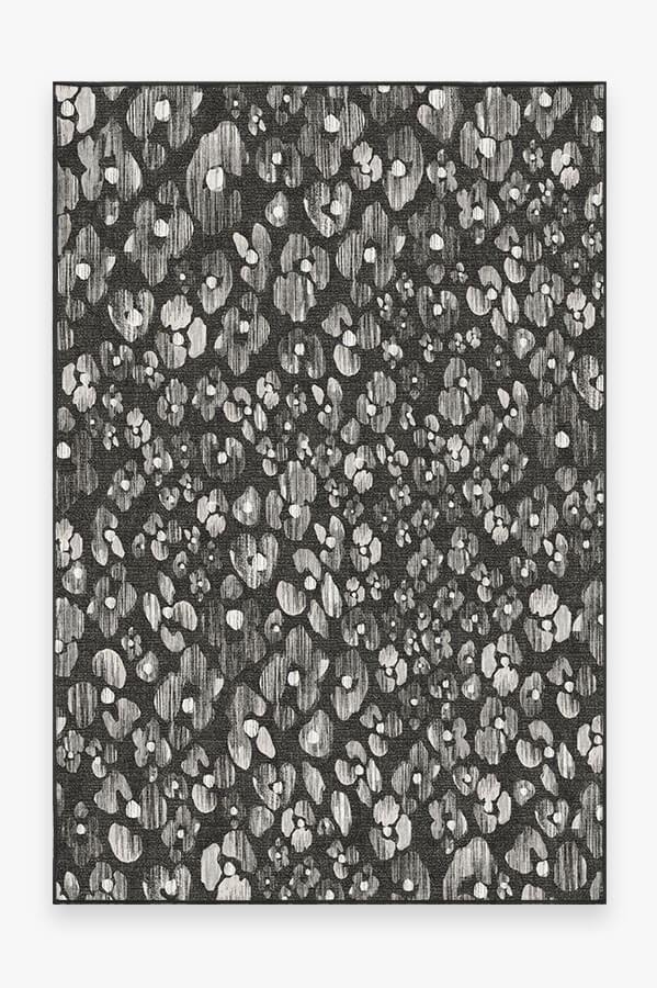 This contemporary Ayana Charcoal rug displays a field of beautifully striated flowers in varying shades of grey and white.