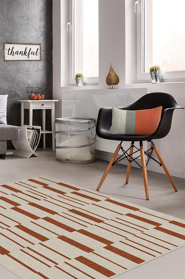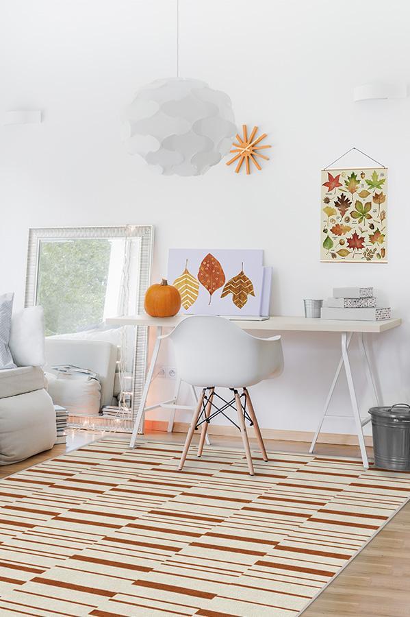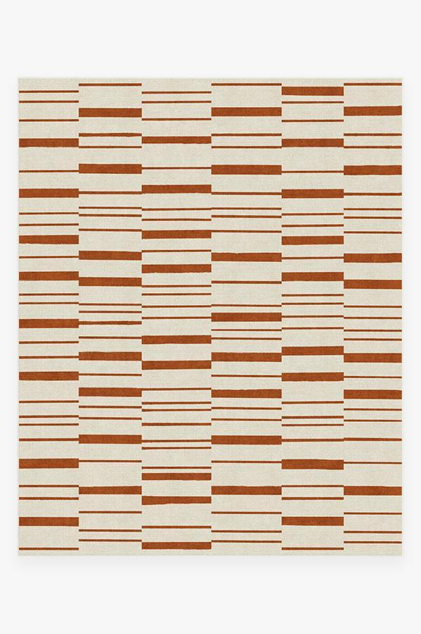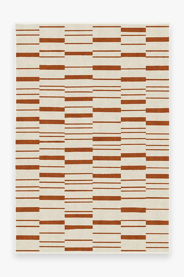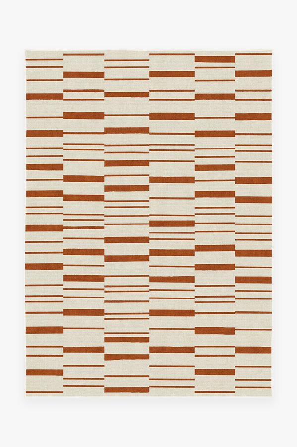 Broken Stripe Rust Orange Rug blends the warm colors of fall with a smart take on the classic stripe motif. This simple and modern design is showcased in autumn hues of orange and pearl to bring a welcoming seasonal vibe to your home.