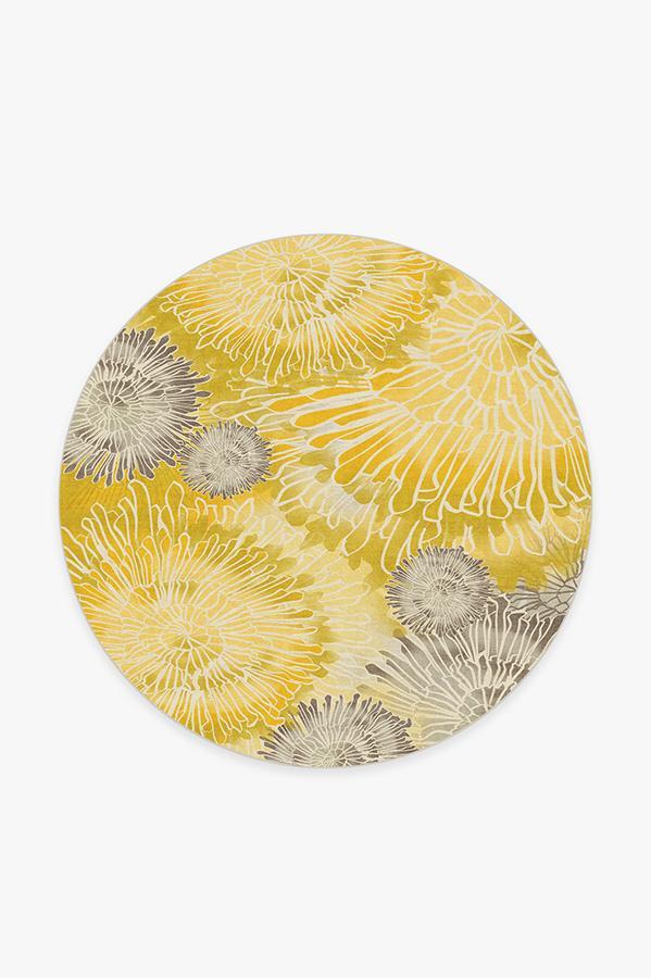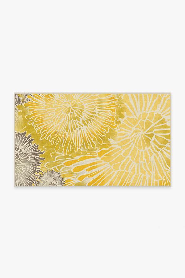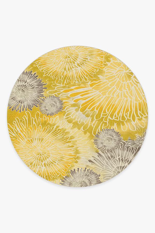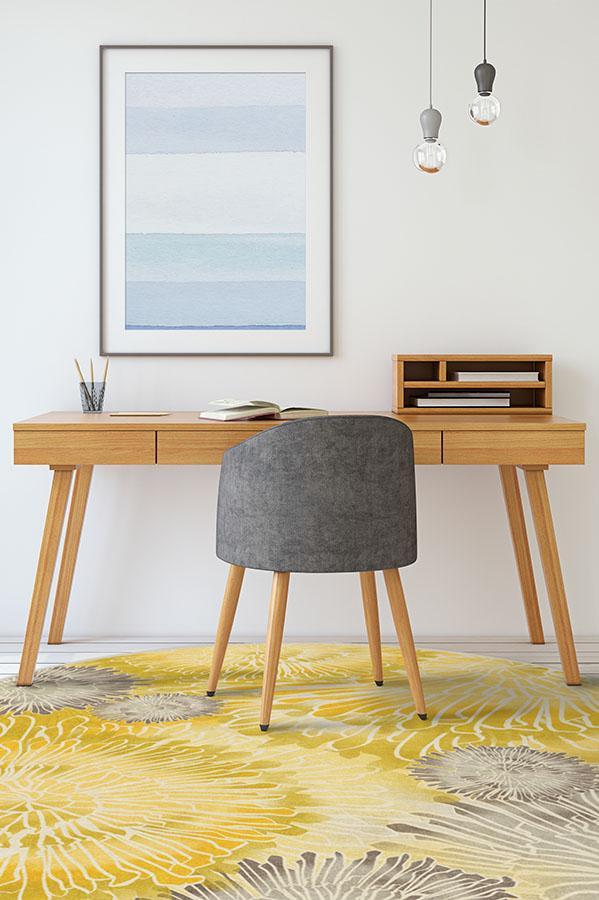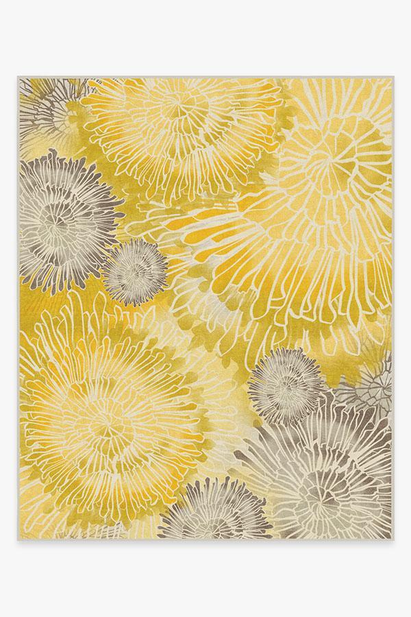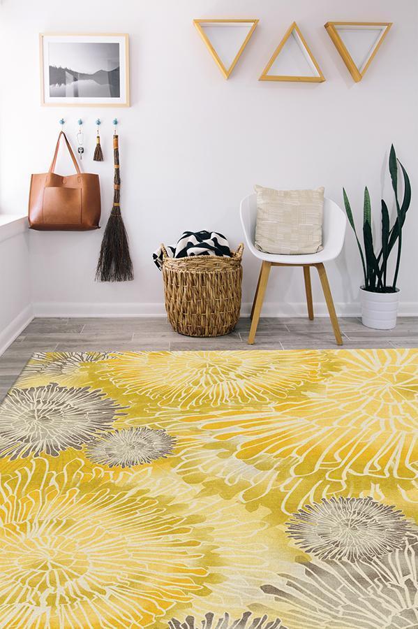 Your home will enjoy a splash of sunshine when you decorate with our Chrysanthemum Yellow rug. This delicately hand-drawn, floral motif bursts with vibrant colors of Danish and dandelion yellow, Polenta, mushroom and silver taupe. Perfectly suitable to bring seasonal style and decorative energy to your current home furnishings.