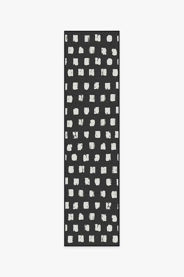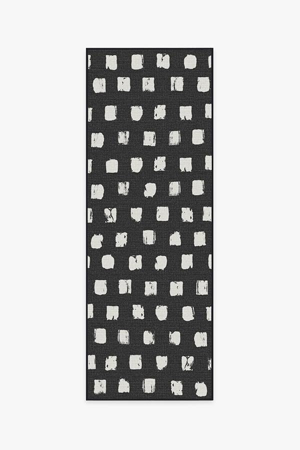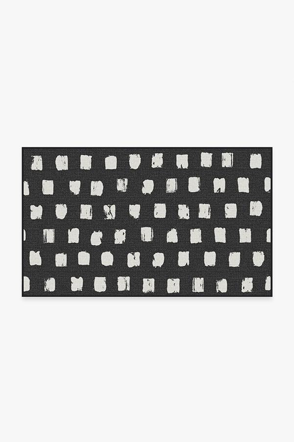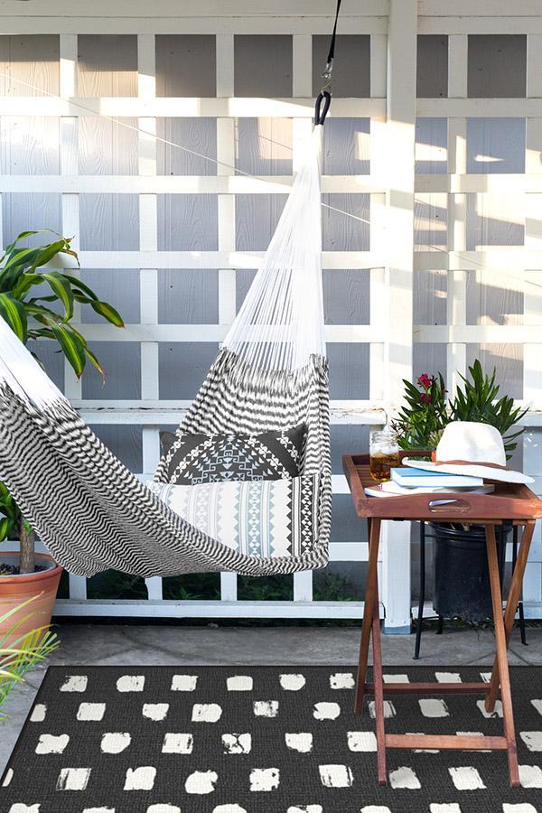 Refresh your patio with our Outdoor Cobblestone Black Rug. Distressed off-white squares floating on a black backdrop give this cobblestone-inspired outdoor rug an edgy flair.