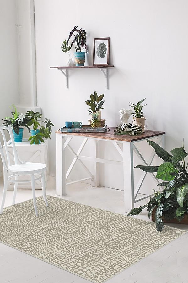 Crackle Light Grey Rug takes inspiration from the craquelure of old paintings. Rendered in light pewter grey on mascarpone white, the dense pattern of cracks gives this abstract rug a stylish and timeless appeal.
