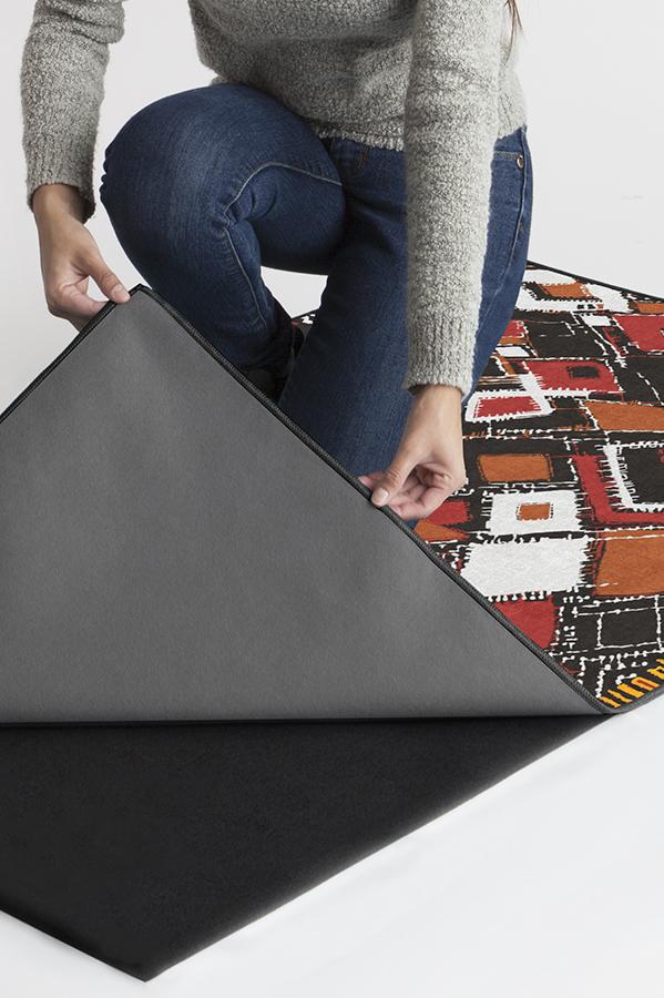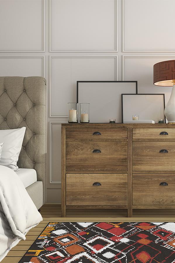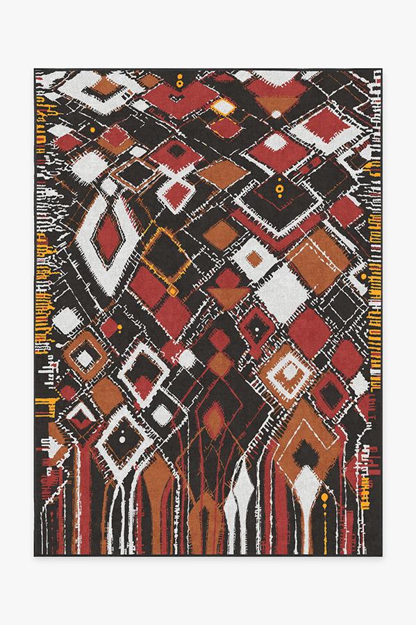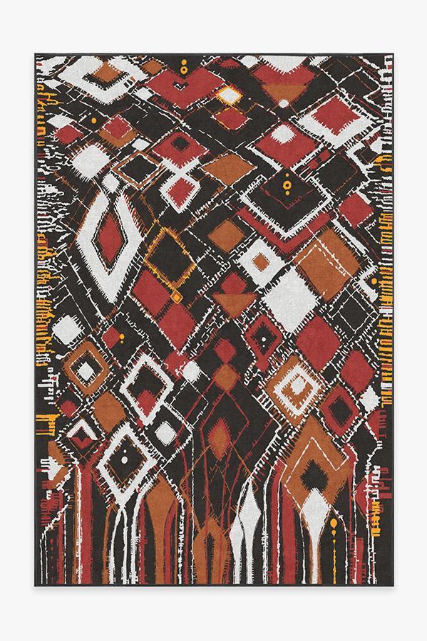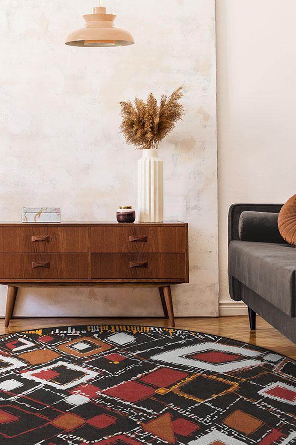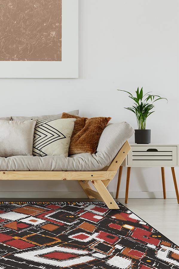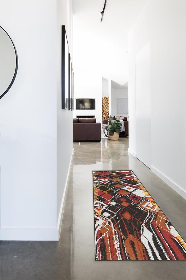 Roll out our Delikesh Autumn rug to bring warmth and decorative spice to your home's interior furnishings. High-contrasting, energetic hues of autumn orange, merlot red, and Danish Yellow intermix upon a background of tiramisu, culminating in an expressive, mosaic-abstract design. Enliven the season by adding this exceptional accent to any urban and suburban space.