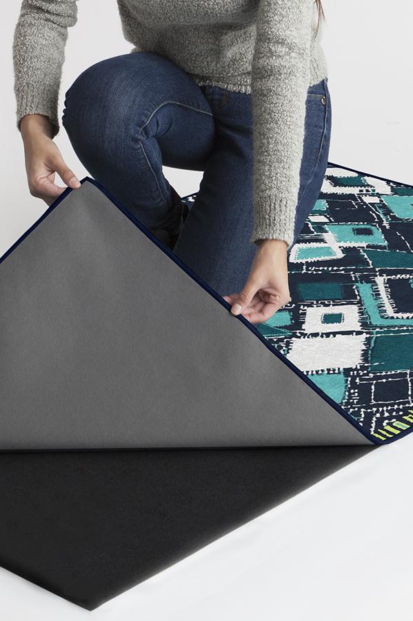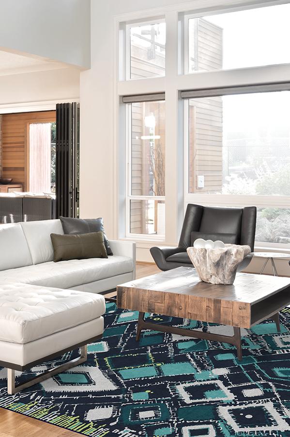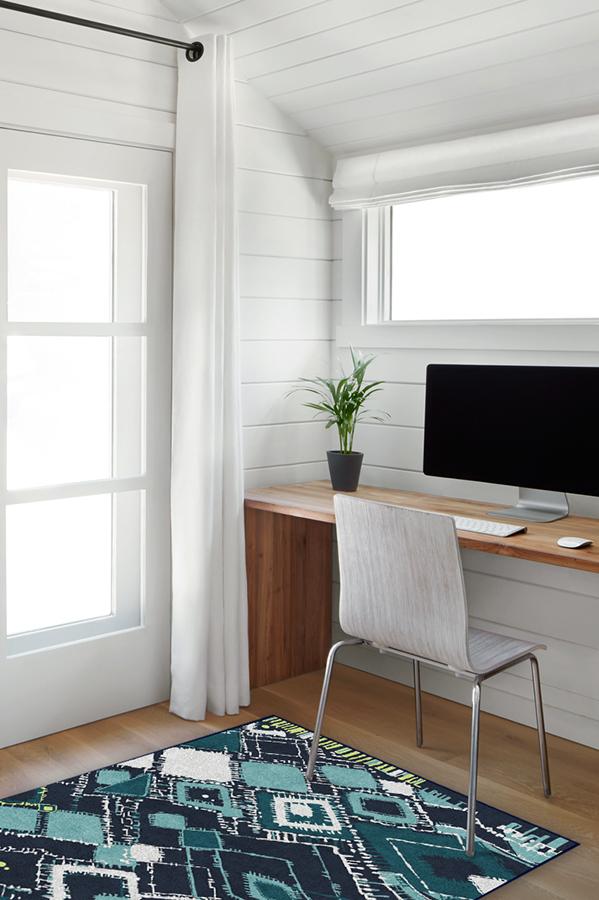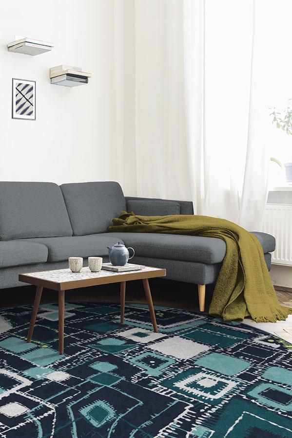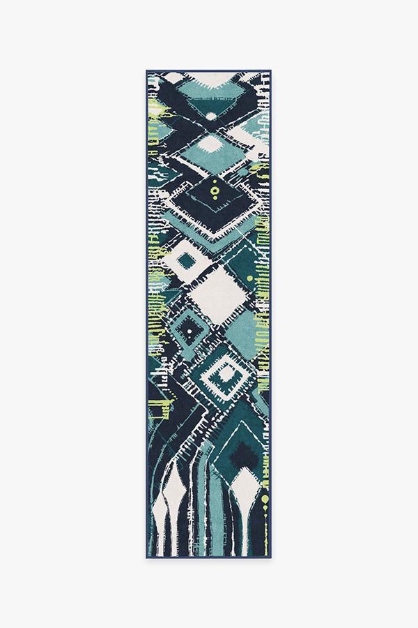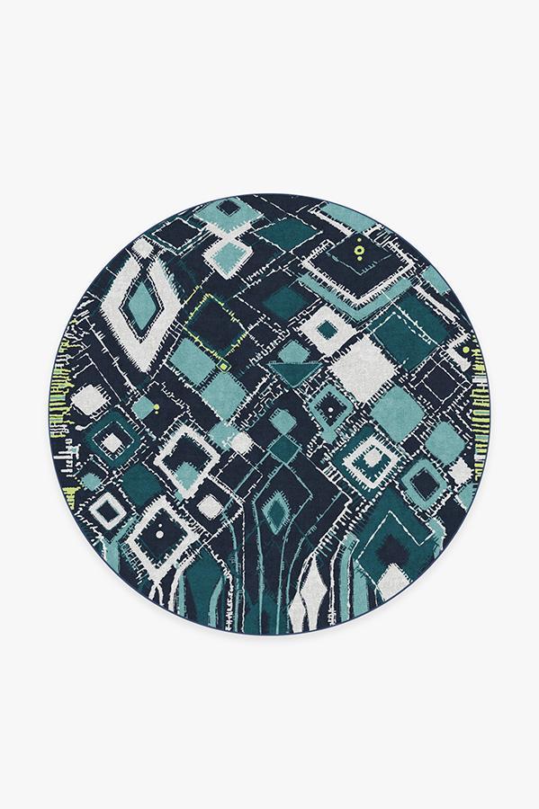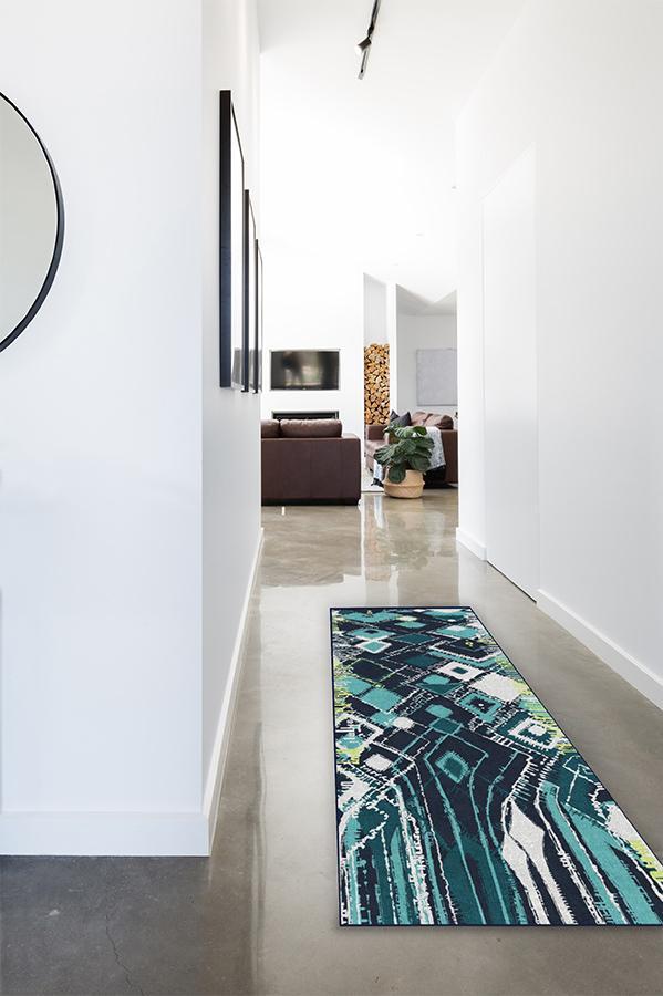 Adorn your floors with artistic flair by laying down our Delikesh Midnight rug. This mosaic-meets-abstract motif is colored in high-contrasting hues of navy, turquoise, teal and granny apple green. Excite any room with this unique and dynamic floor decor piece in any urban or suburban interior.
