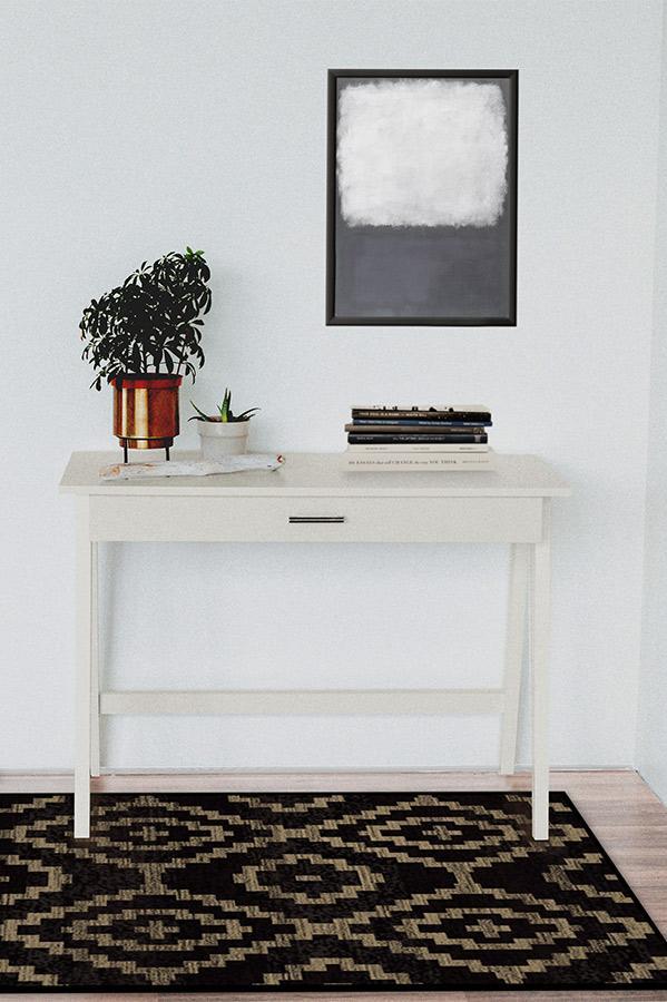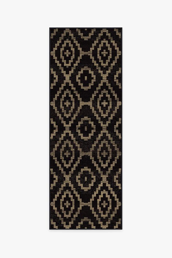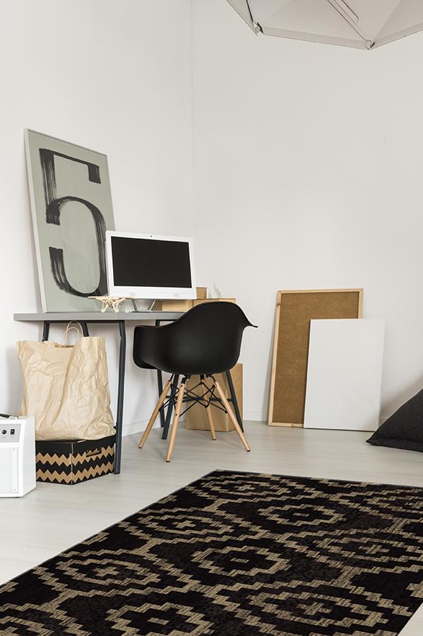 This Diamond Trellis Black rug is a bold and dynamic accent to stylishly furnish your home's interior. The distressed and graphic diamond pattern is suitable for modern, Bohemian and contemporary spaces that will effortlessly anchor any room. With a dramatic and high contrasting color palette of ash brown, walnut and true black, this decor piece will add visual interest to your space and easily coordinate with a wide range of woods, metals and stone.