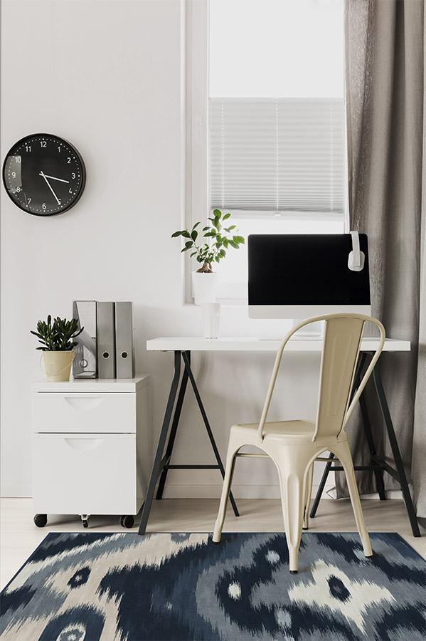 Our contemporary Endah Blue rug presents a fresh take on traditional Indonesian ikat designs in beautiful tones of blue and cream.