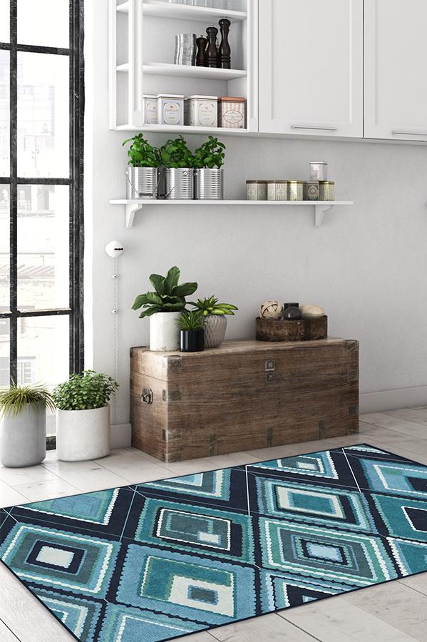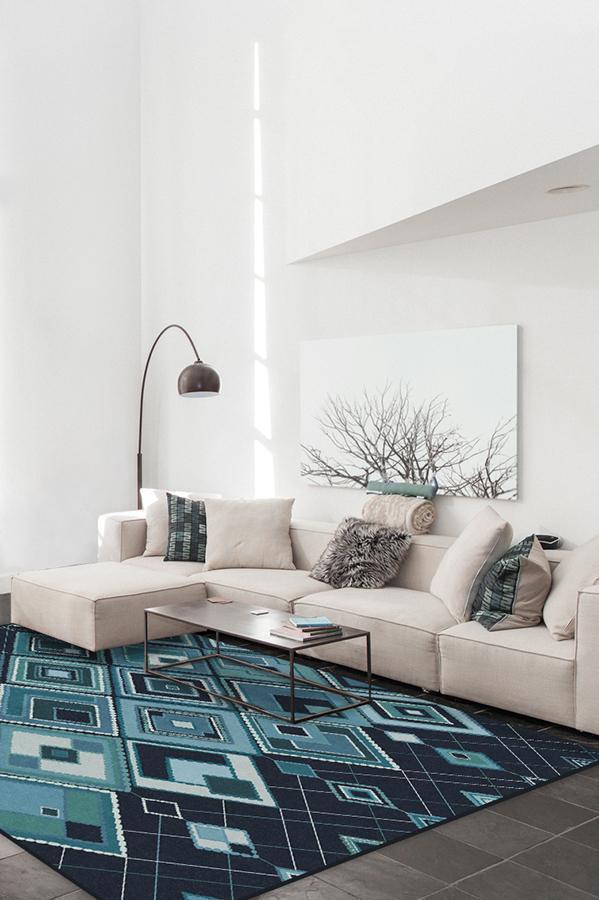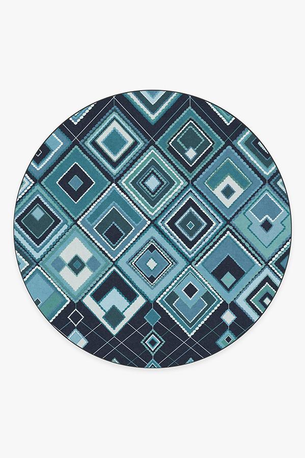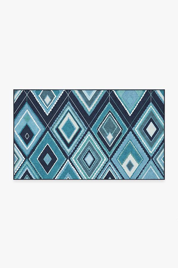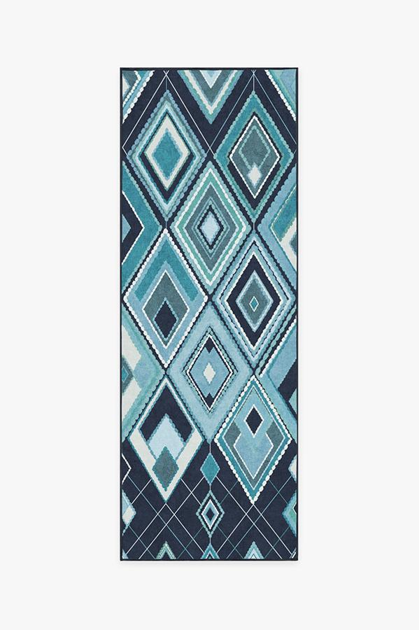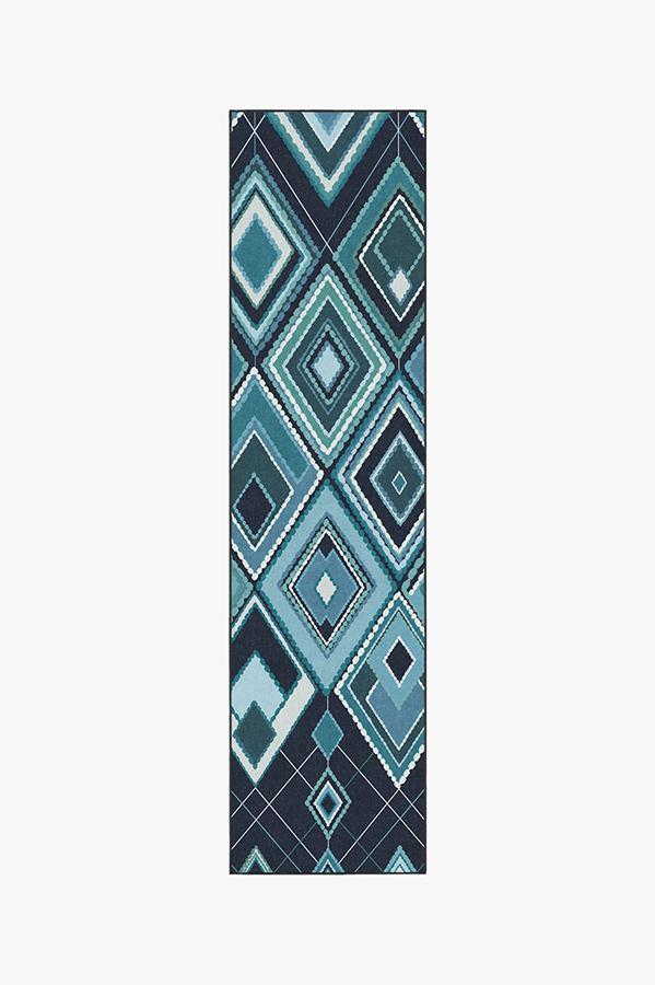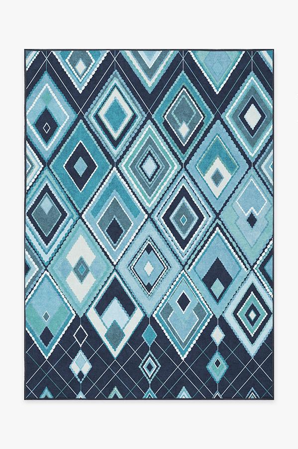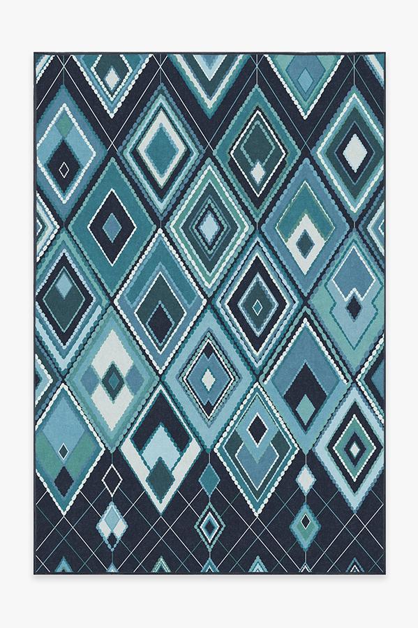 If diamonds are forever, then our Esra Midnight rug is for you. Repeating diamond shapes colored in cool shades of dark turquoise, seafoam blue, sky blue and baby blue are strikingly juxtaposed against a background of midnight blue. When you lay down this floor covering you'll bring a sparkle to any urban or suburban home interior.