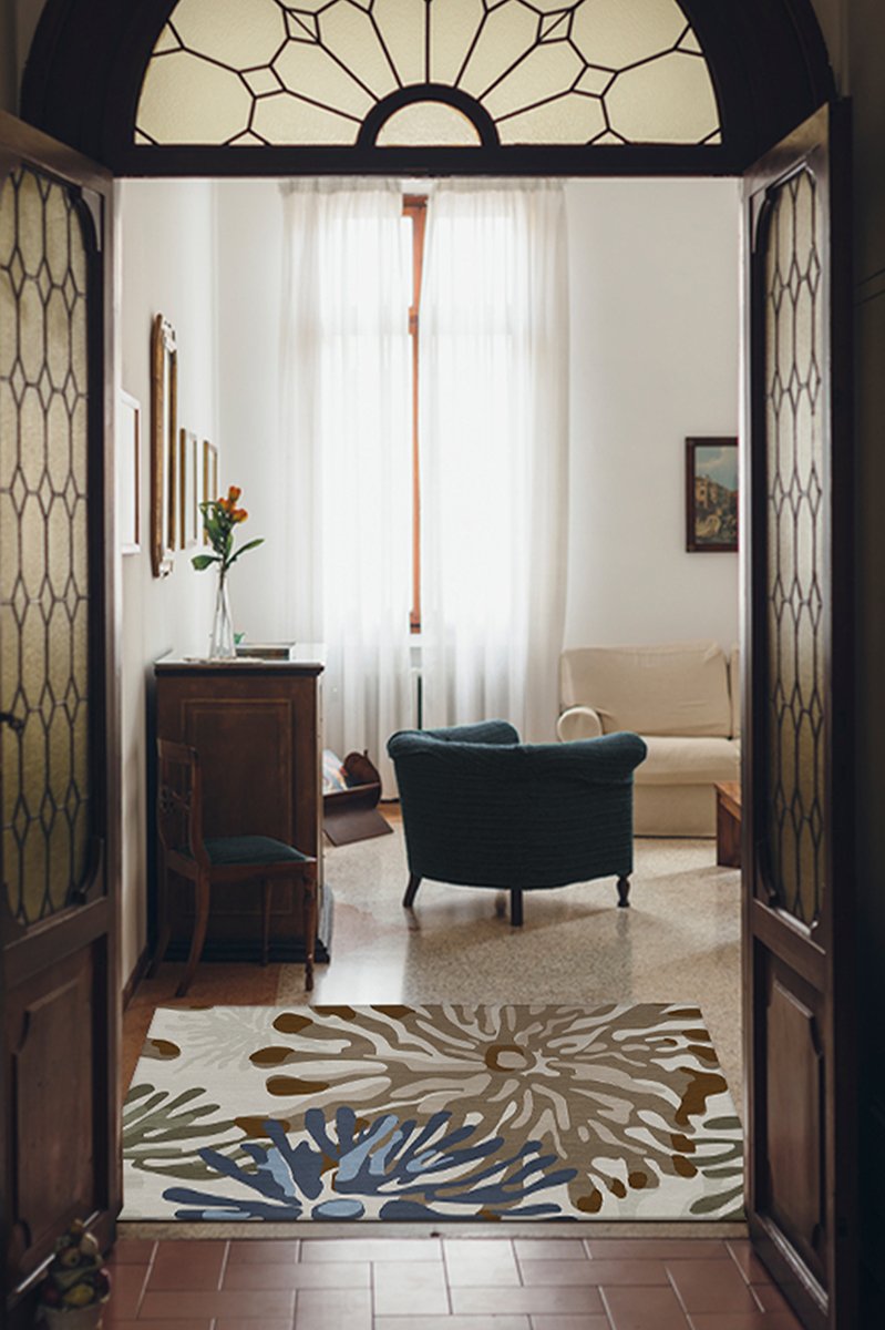 Bring our exquisite Genevieve Floral Natural rug to your home for an artsy, updated look. The magnificent floral design intermingles hues of silver taupe, stone, olive green, mocha brown, dark cream and nordic blue. This elegant design will enhance any contemporary, modern or transitional home decor story.