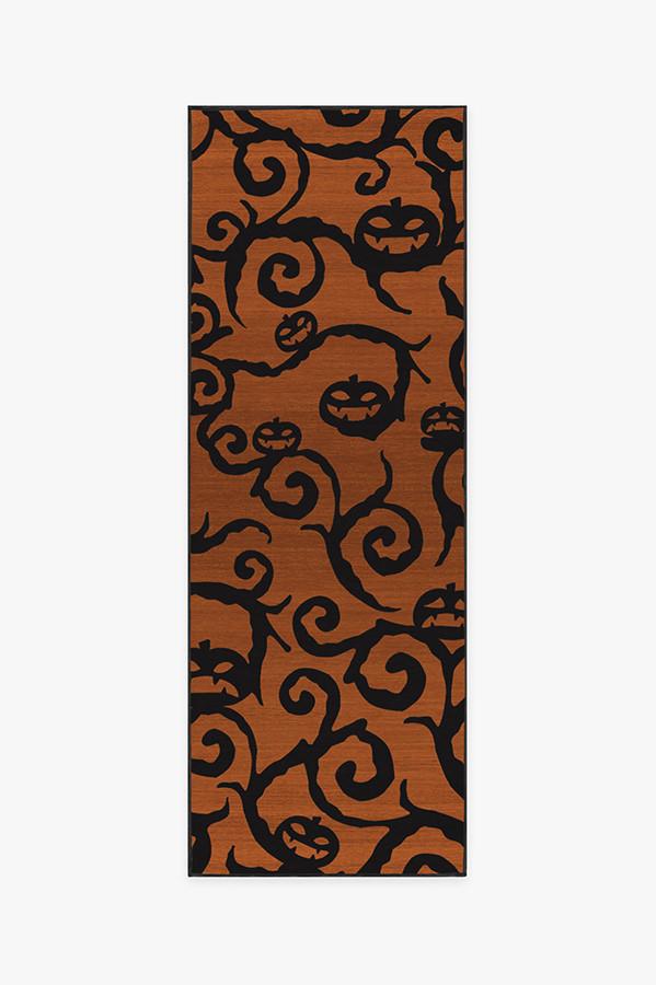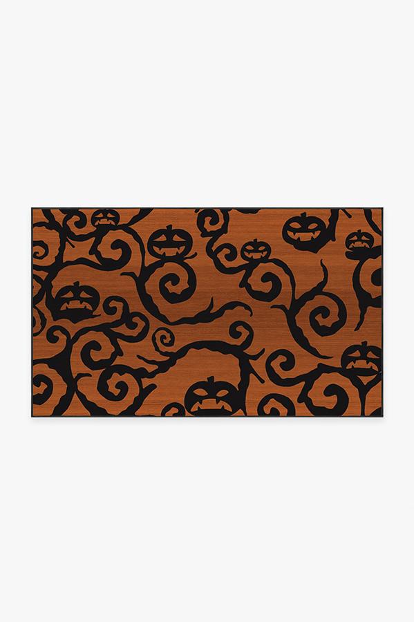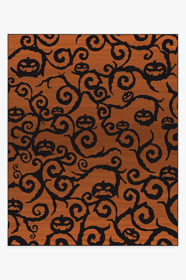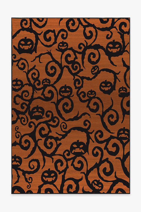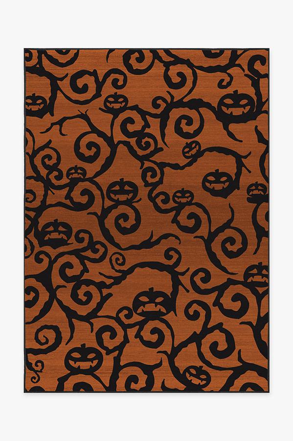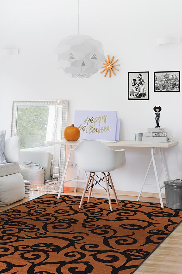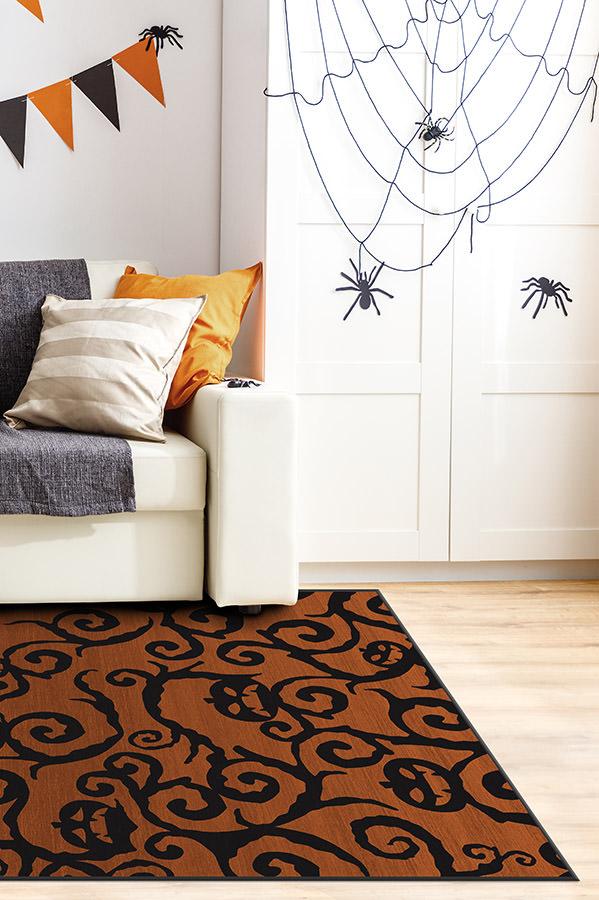 Invite our Halloween Nightly Rust Orange rug to add haunting style your home's decor. The daring design of jack-o-lanterns on the vine is silhouetted in true black against a blend of rust orange, autumn orange and charcoal colors. This quintessentially creepy yet contemporary decorative accent is sure to bring holiday fun to your home's interior.