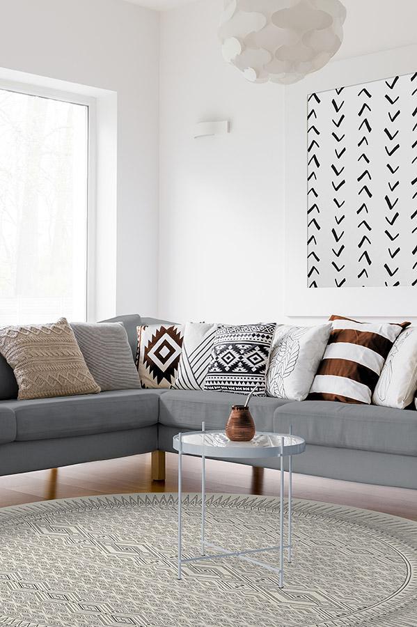Our Herdanza Black & White Rug is sure to bring visual interest to your floors. Sleek geometric patternÐhand-drawn to suggest textureÐdefine this rug's modern design, while fringe tassels give it a traditional handwoven look. With subdued hues of grey and pearl, it's a versatile rug that will complement any room theme.