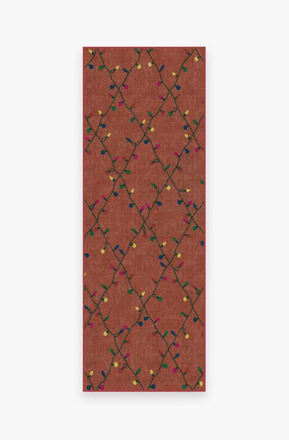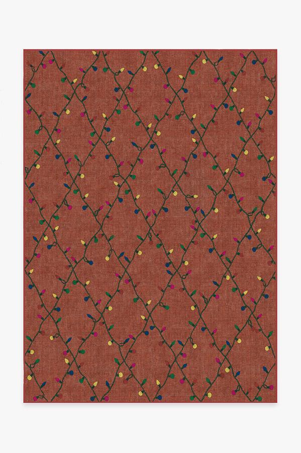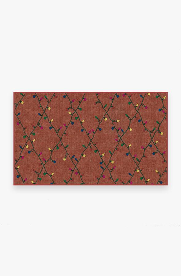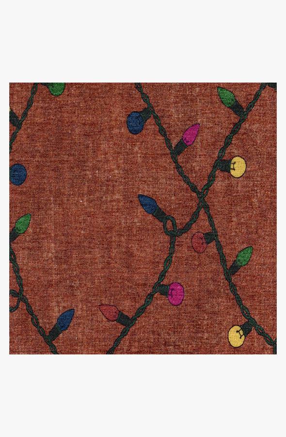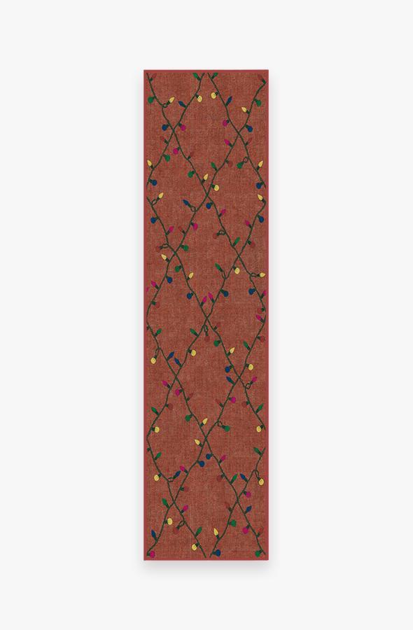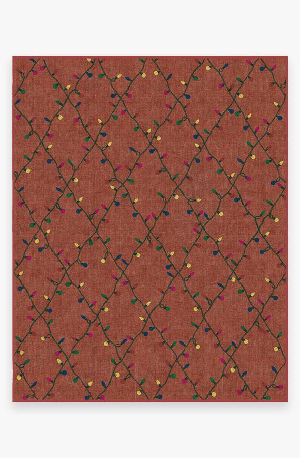 Light up your seasonal decor with our Holiday Lights Red rug, adorned with vintage style strings of multicolored lights, laid out in a diamond motif, colored in jolly hues of evergreen and tomato red on a rich field of holiday red.