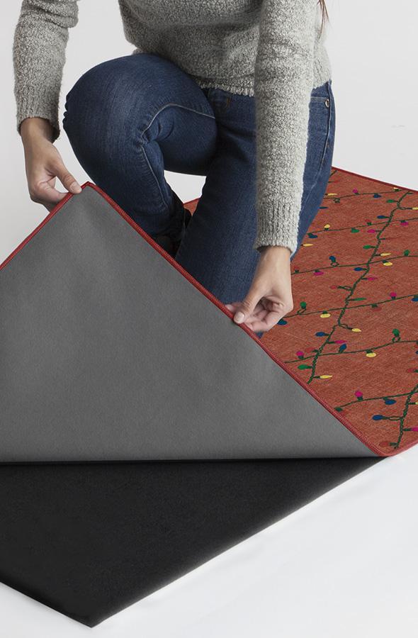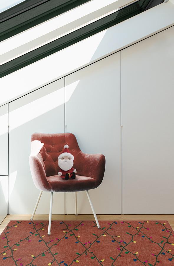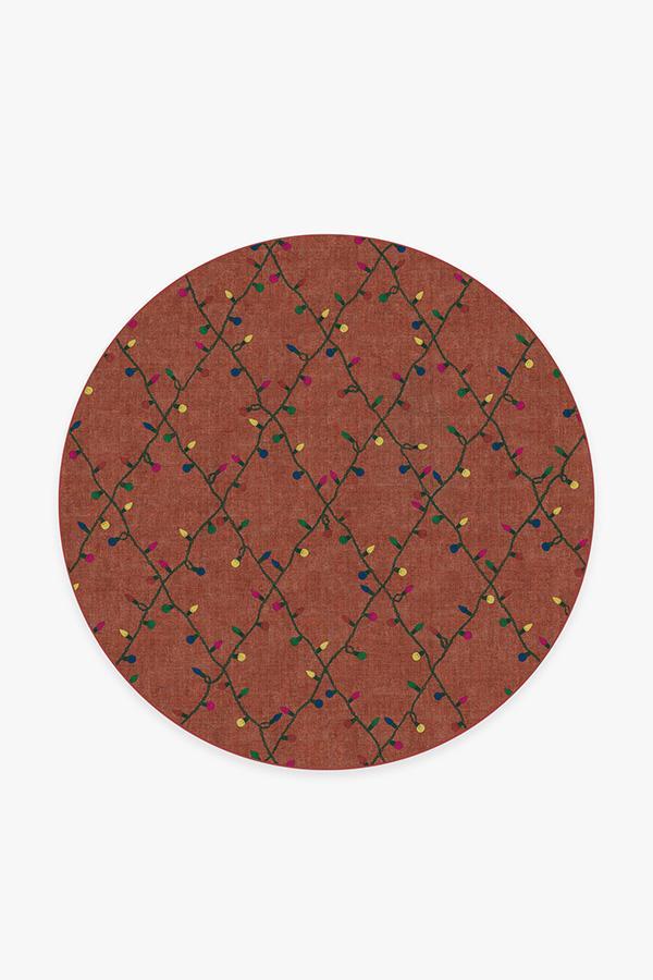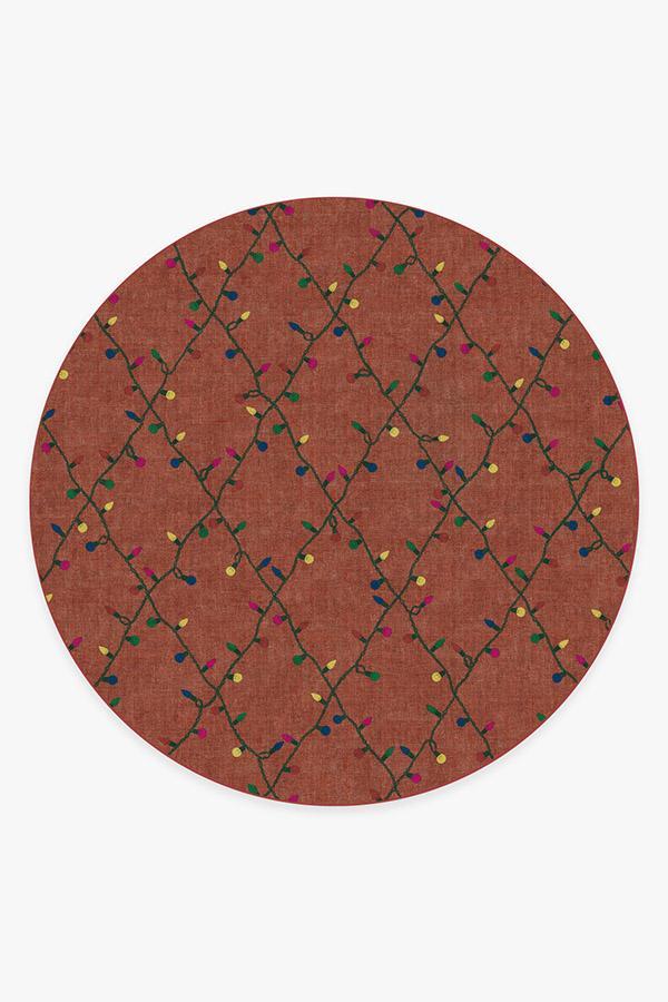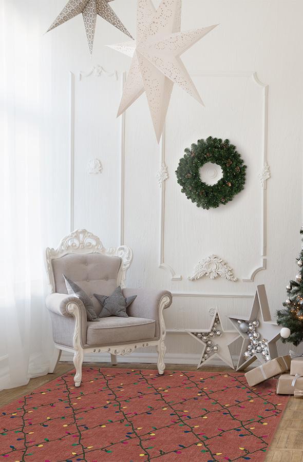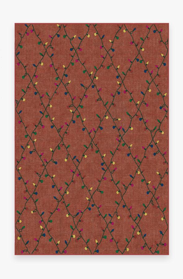 Light up your seasonal decor with our Holiday Lights Red rug, adorned with vintage style strings of multicolored lights, laid out in a diamond motif, colored in jolly hues of evergreen and tomato red on a rich field of holiday red.