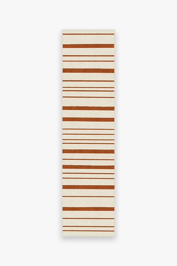 Featuring a mix of bold and fine lines in warm fall colors, our Hudson Stripe Rust Orange Rug will instantly add a welcoming touch to your home. This new take on the classic stripe motif is a subtle and elegant way to give your home decor a seasonal update.