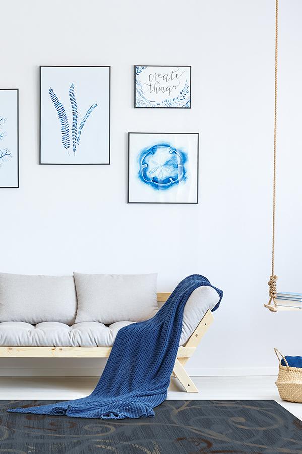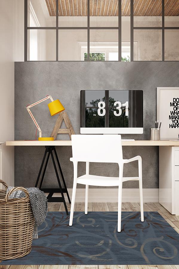 Give your home an inspired touch with our stylish Ironwork Slate Blue rug. Designed with grace, its swirl motif is highlighted in hues of grey blue, espresso brown, grey taupe and dark cream on a slate blue background. The richness of this accent piece will elevate any room in your contemporary, modern, or transitional style home.