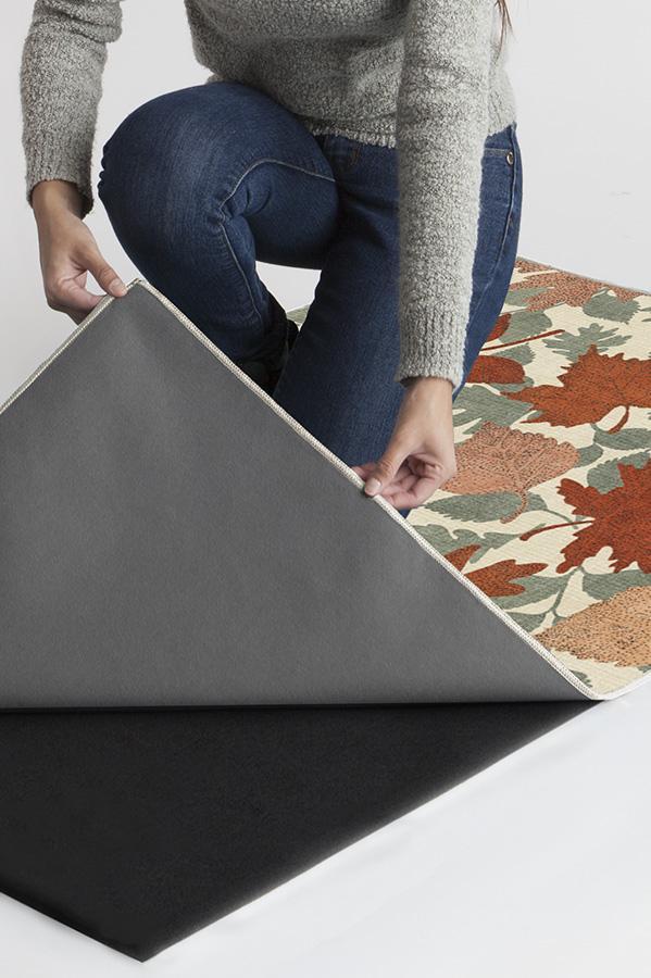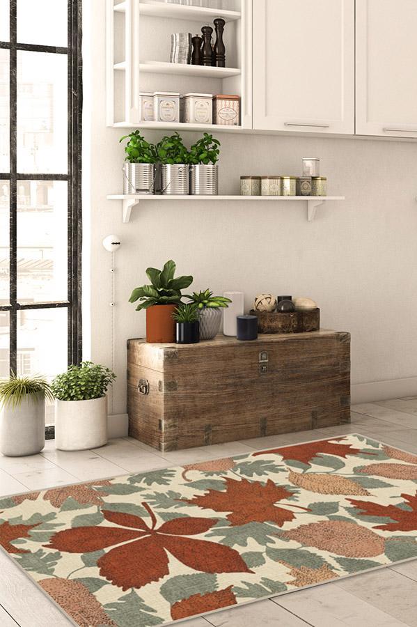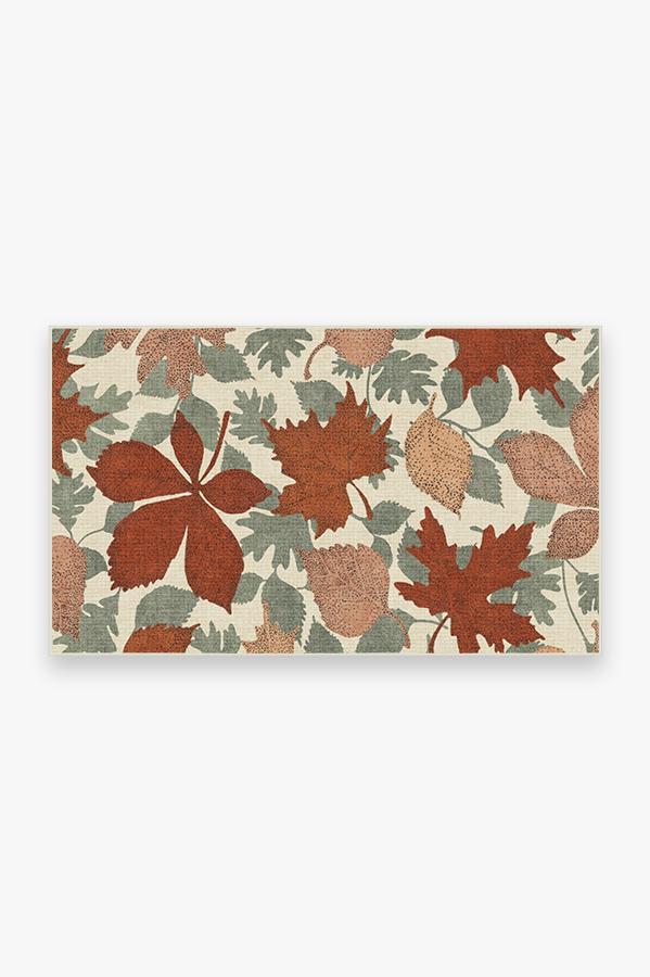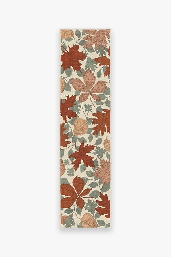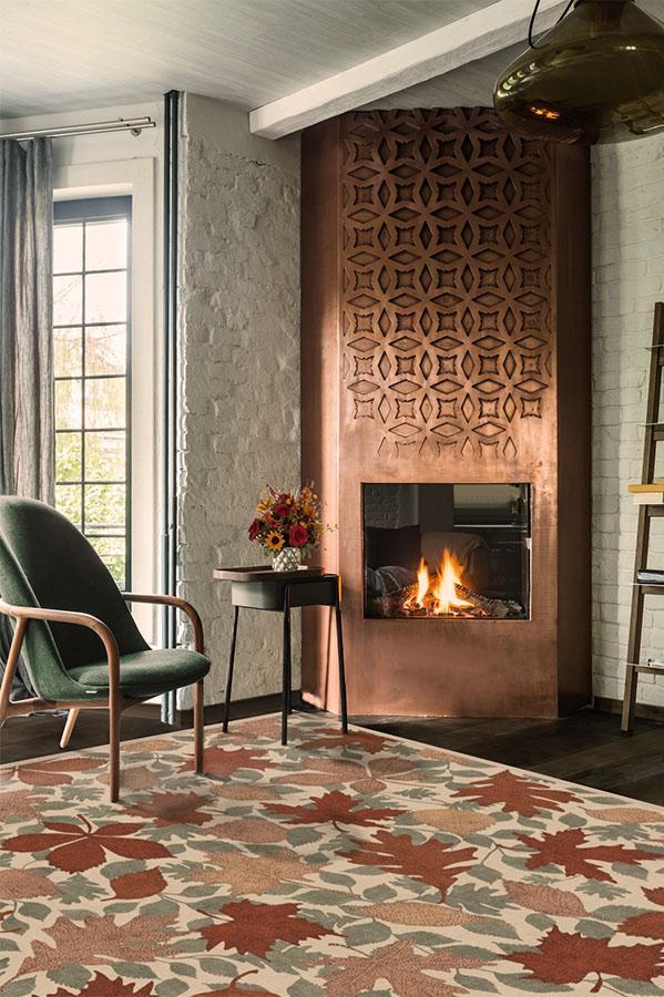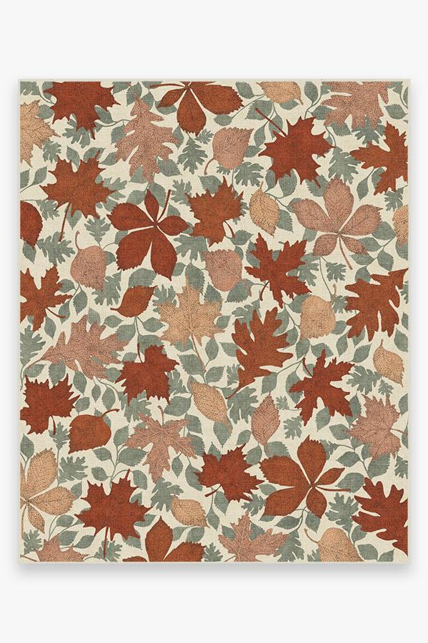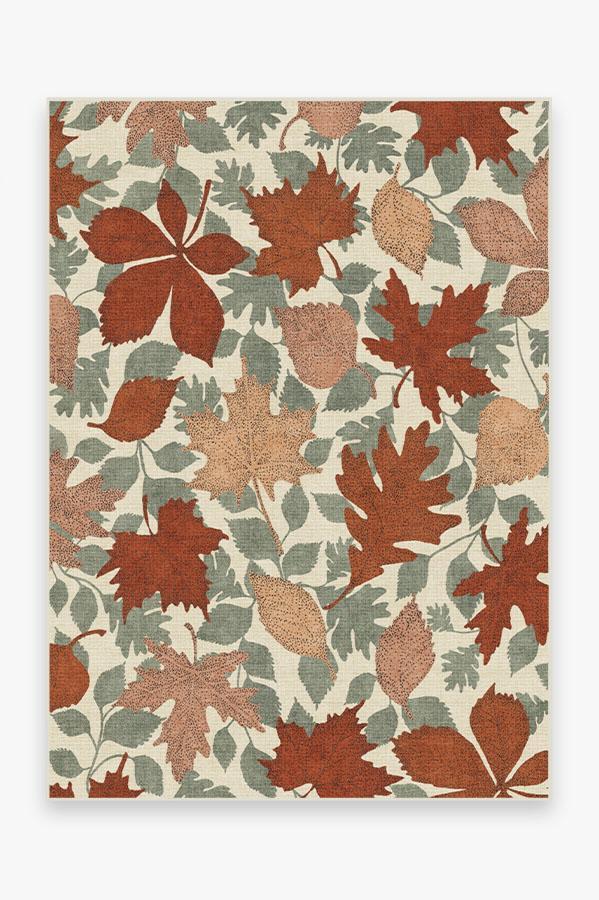 Jora Autumn Rug celebrates the colors of the season with its fall foliage design.Featuring hues of burnt orange, rose gold, and fern green on a background of ivoryÐpunctuated with depth and dimension by a distinct dotted textureÐthis fall-perfect rug leaves you with a feeling of warmth and a sense of home.