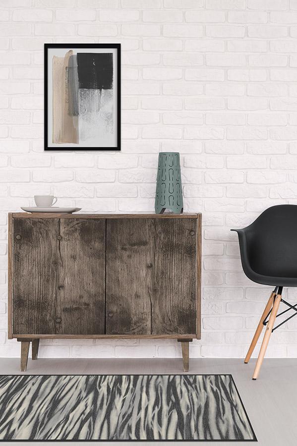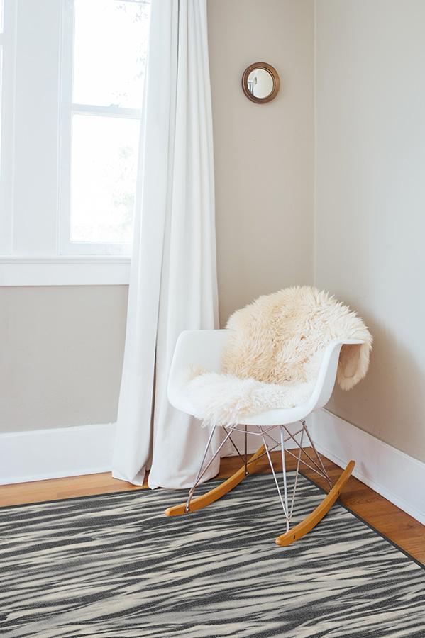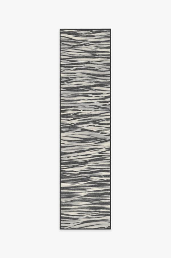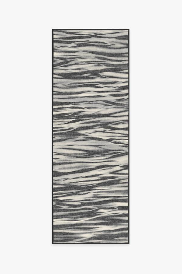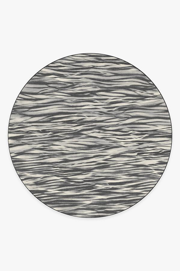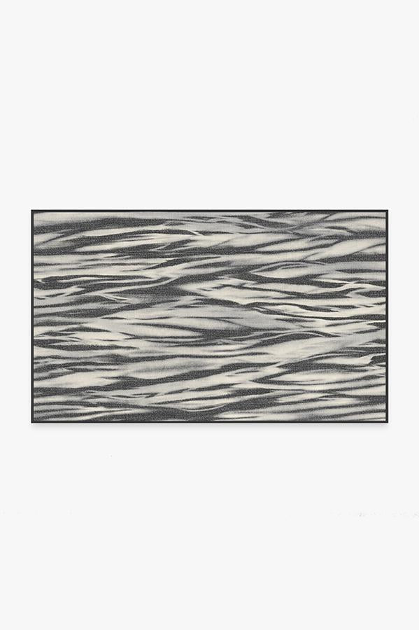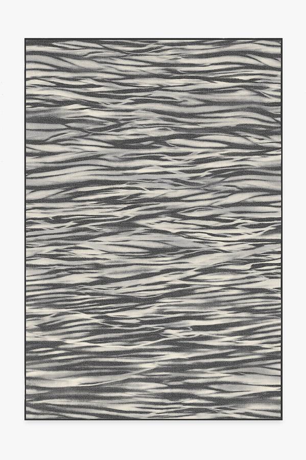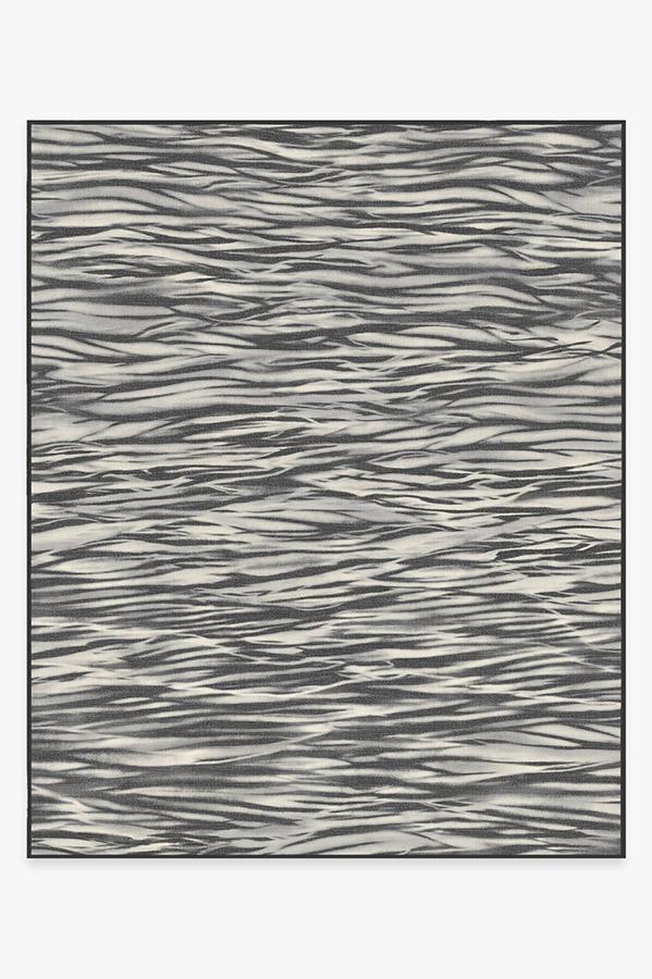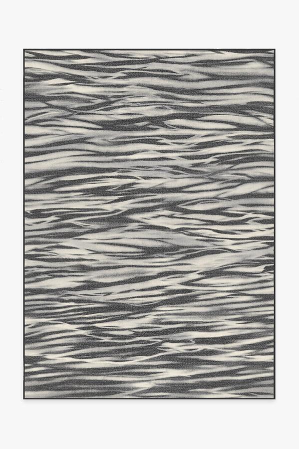 Kawa Greyscale Rug is named after the Japanese word for "river" Rendered in neutral greys and mascarpone white, this abstract motif depicts a closeup of rippling water, bringing a calming statement to any floor.