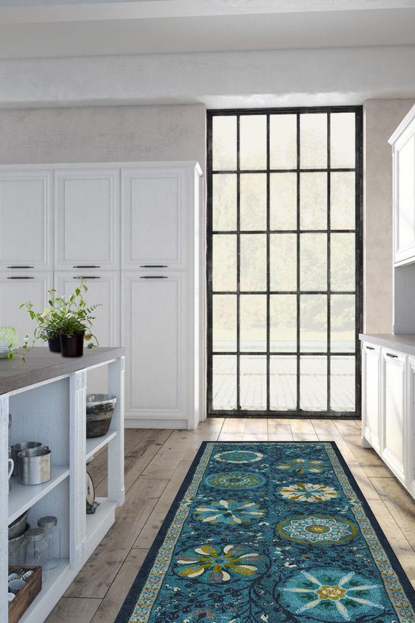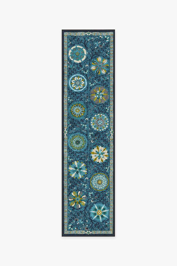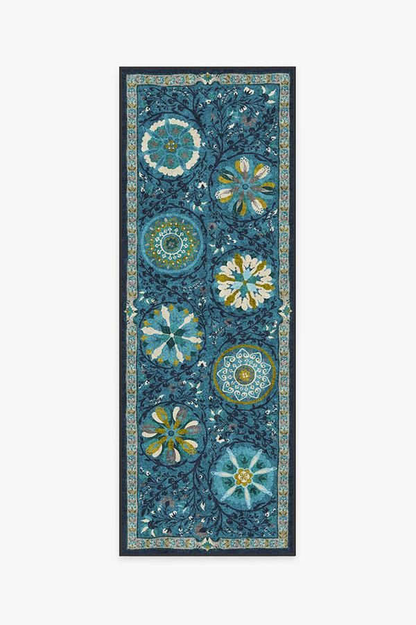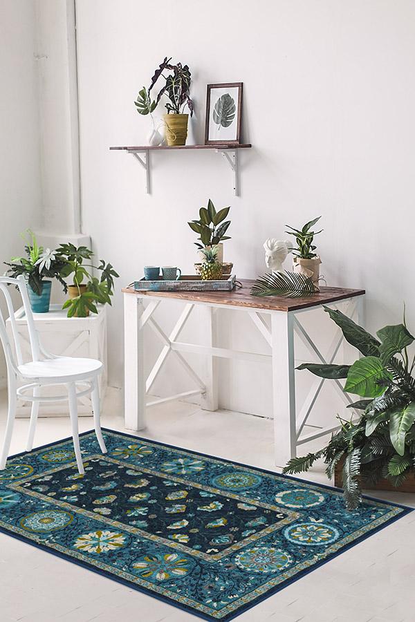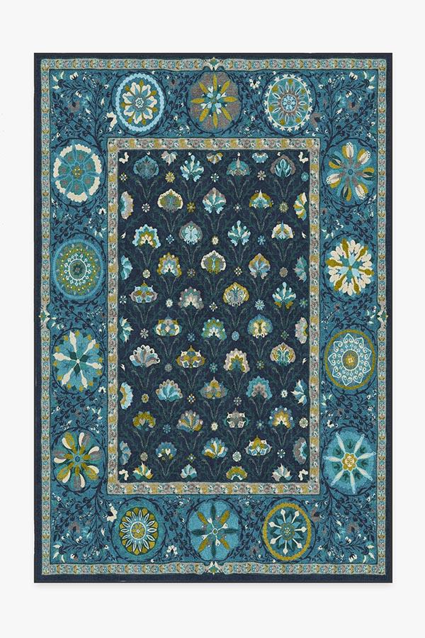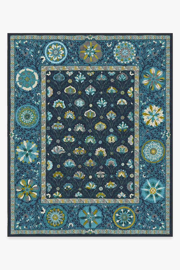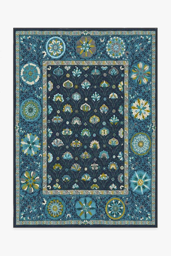 Finesse the beauty of your home decor with our stunning Latiff Midnight Blue rug. Gorgeous hues of deep teal blue, goldenrod, dove grey and navy black blend together to create a meticulous field of fanned florets, surrounded by an assortment of floral medallions. Echoing the spirit of 19th century, Persian rug design this striking accessory will instantly raise the aesthetic value of your contemporary, classic or eclectic interior.