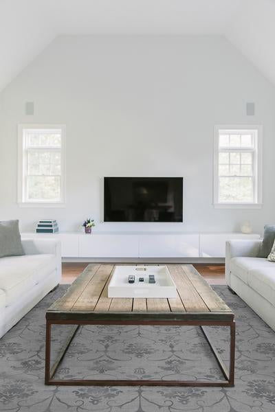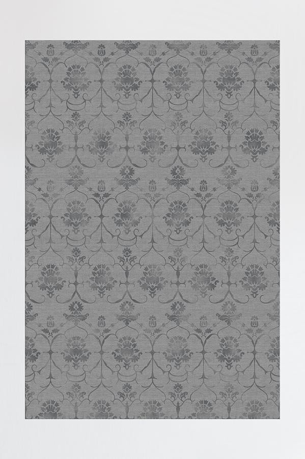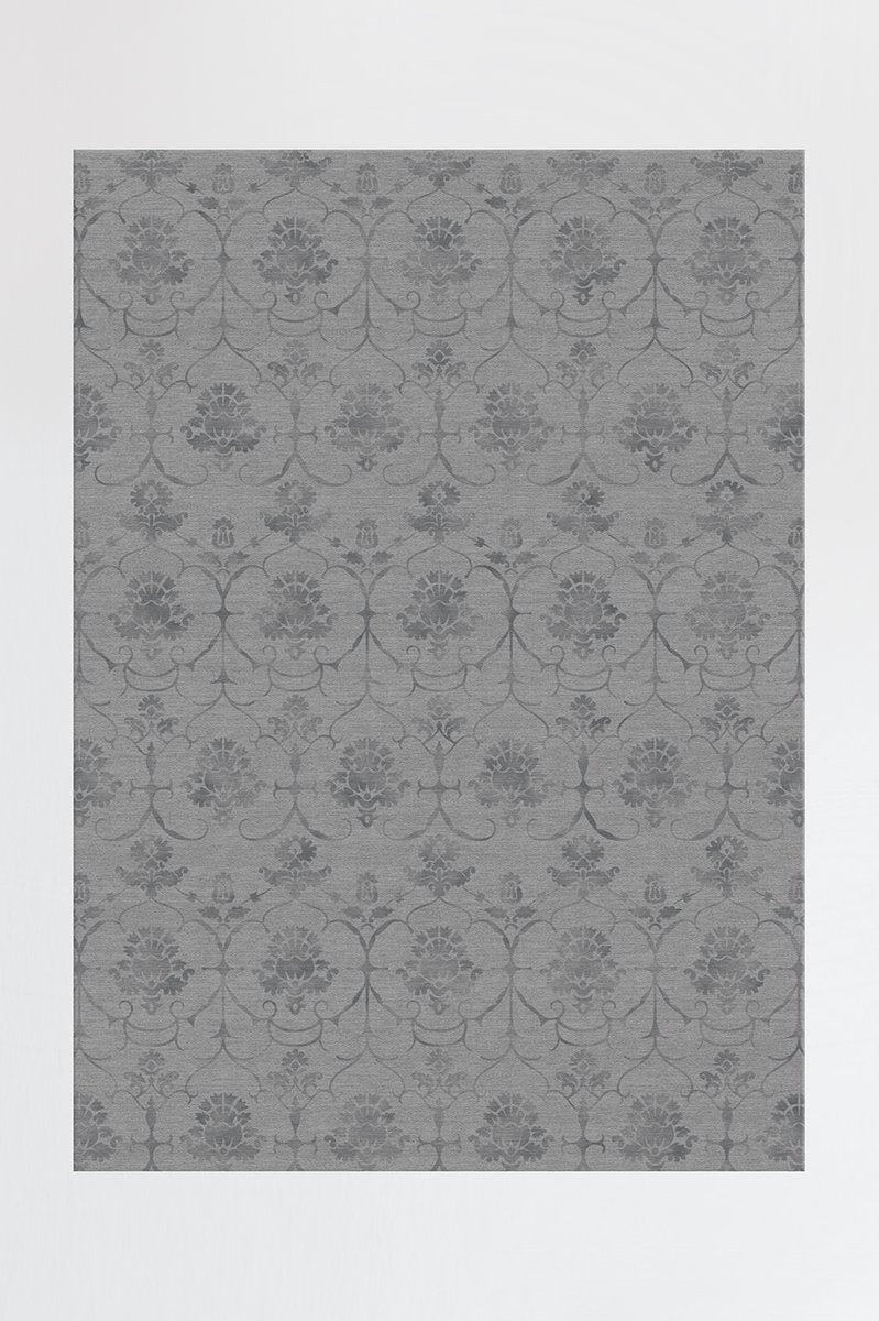 The delicate beauty of this Leila Grey rug pays homage to both Old-World French and traditional design. It features a timeworn, elegant damask motif in grey and silvery hues. Its detailed, yet understated pattern will pair elegantly with your living or family room decor or master suite ensemble.