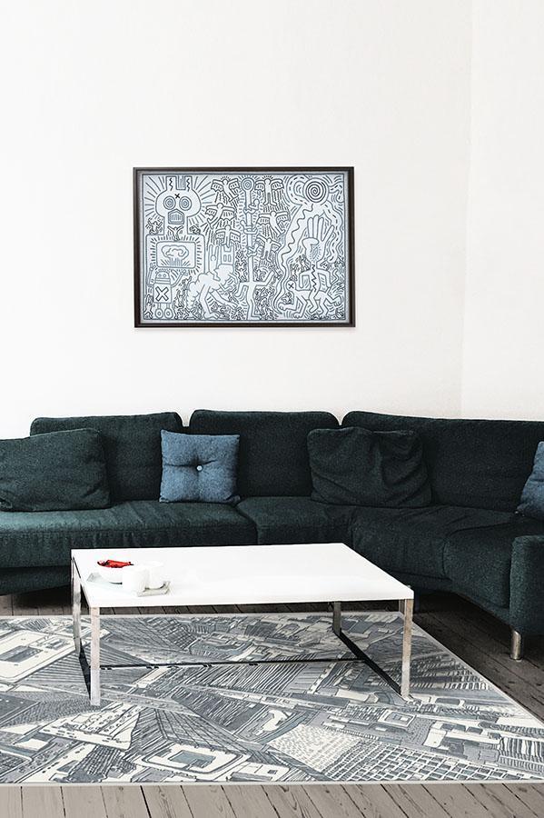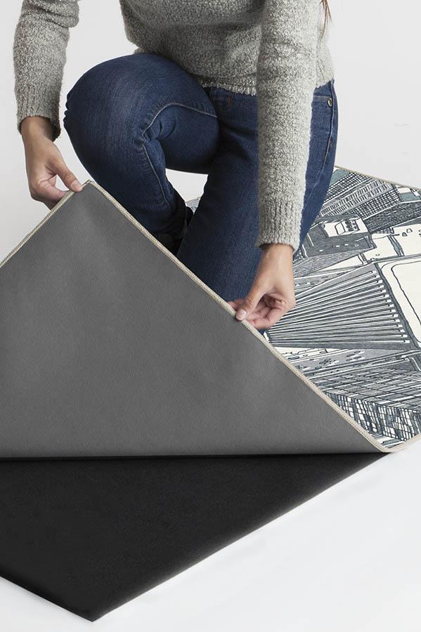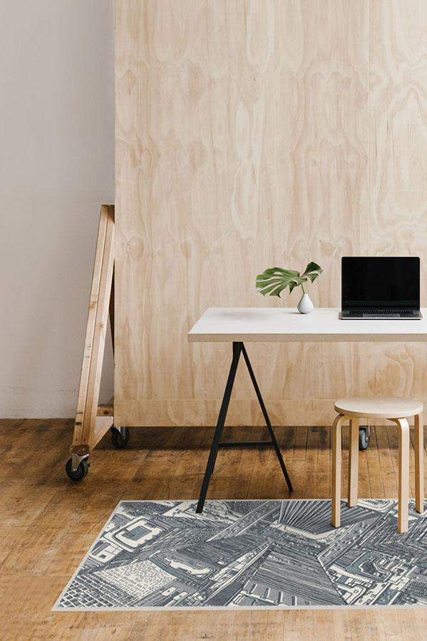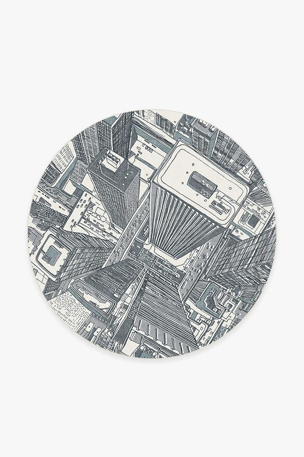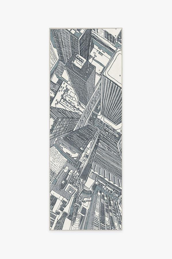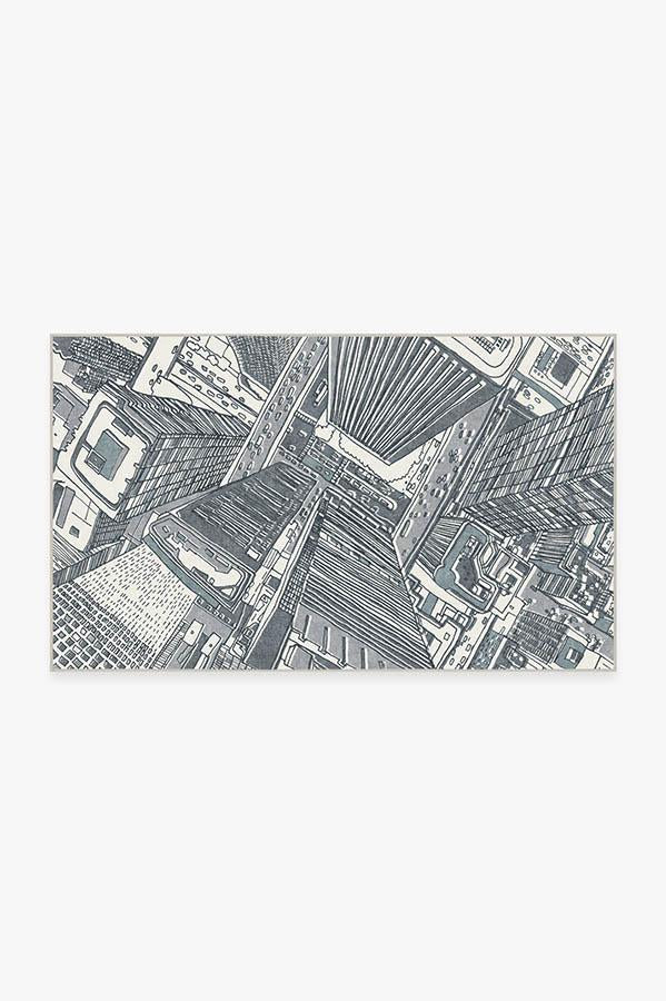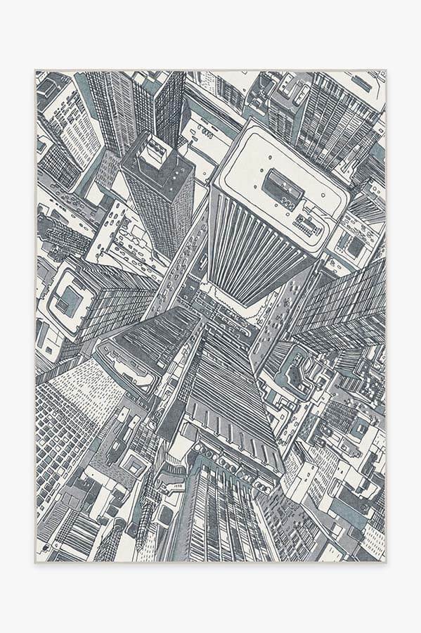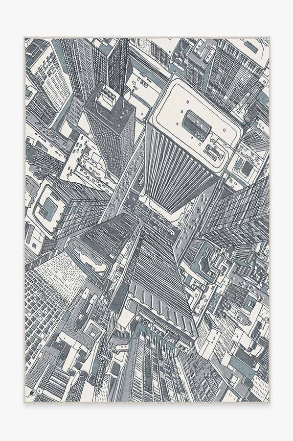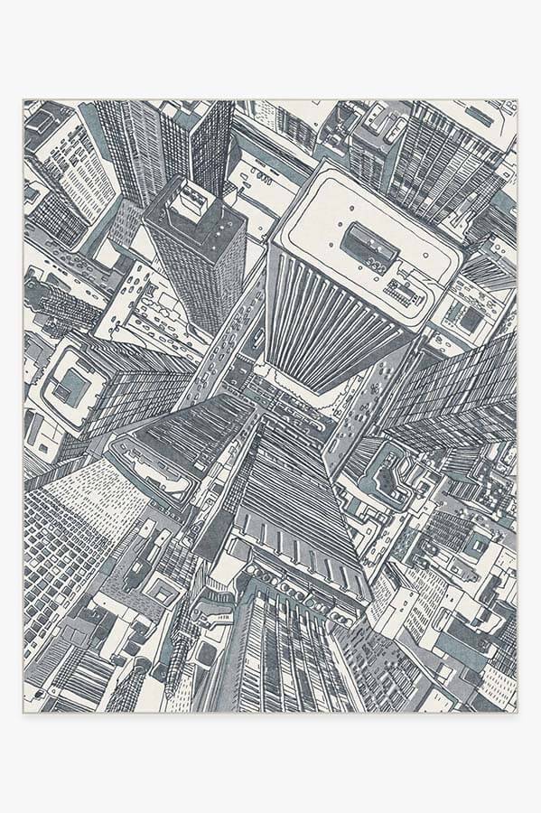 Take your contemporary home decor to new heights with Lux Slate Blue Rug, which showcases an aerial view of a modern city skyline. Featuring clean lines, hand-drawn in various tones of blue and green on pearl, this rug design perfectly illustrates the quintessential urban life.