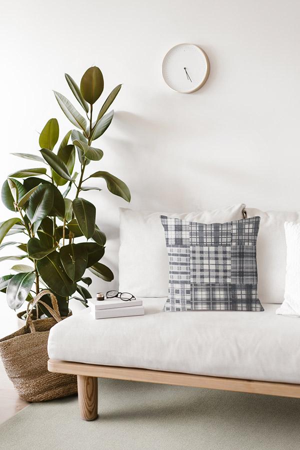 Infuse drama into your home with our Madras Plaid Black & White Pillow. This design features multiple squares of plaid patterns reminiscent of madras, a type of fine-textured fabric, tinted in hues of grey, charcoal, and bone to complement any interior. Pillow colors may vary slightly according to your device and the lighting in your space.