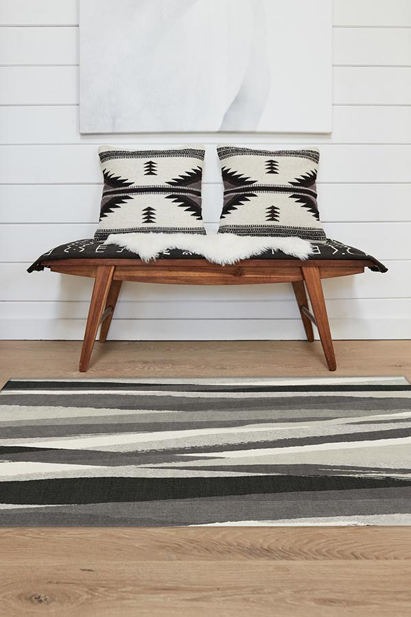 Re-energize any room in your home with our dynamic Meridian Smoke rug. Bold and linear brushstrokes of neutral greys, blacks and silver blend and overlap into a design of abstract waves. You'll see how easily this decorative piece will anchor and add interest to any modern, contemporary or coastal home interior.