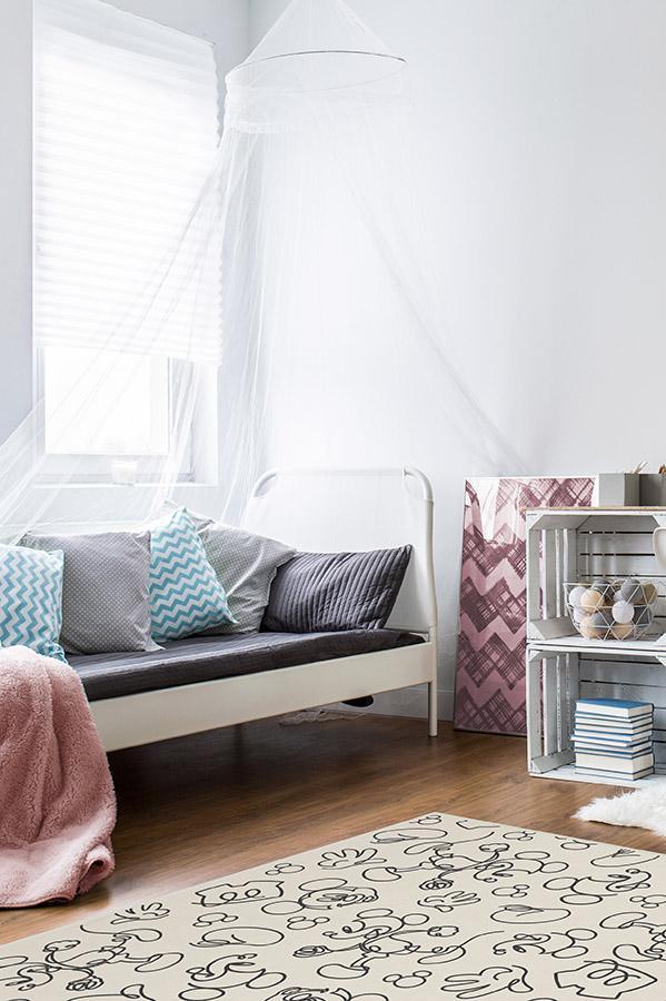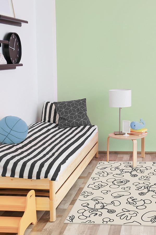 Kids of all ages will surely love Mickey Doodles Black and Ivory Rug. Featuring continuous line drawings of Mickey Mouse, rendered in sand dollar on a slate and sky blue backdrop, this animated Disney rug is sure to spark the imagination.