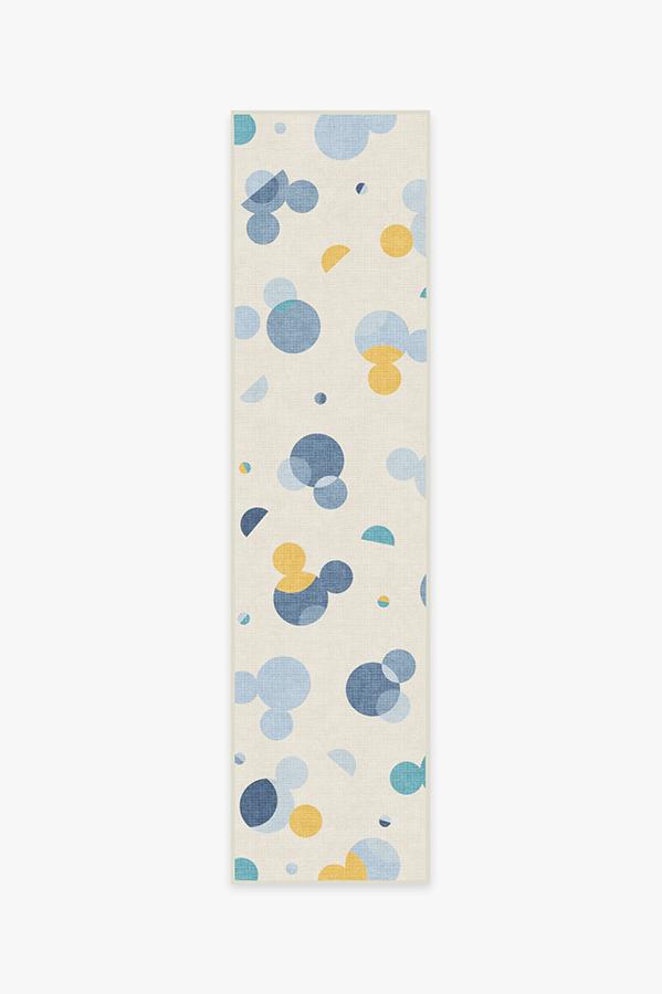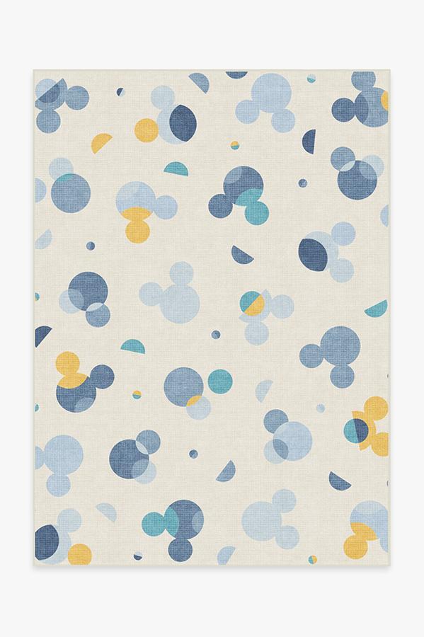 Our Mickey Polka Dots Slate Blue Rug proves that dreams really do come true. Tinted in soft hues of slate blue and silver with pops of yellow, this fun and playful Disney rug features Mickey Mouse's iconic silhouette floating among circles and half moons, bringing a dreamy, geometric vibe to any nursery or kid's space.