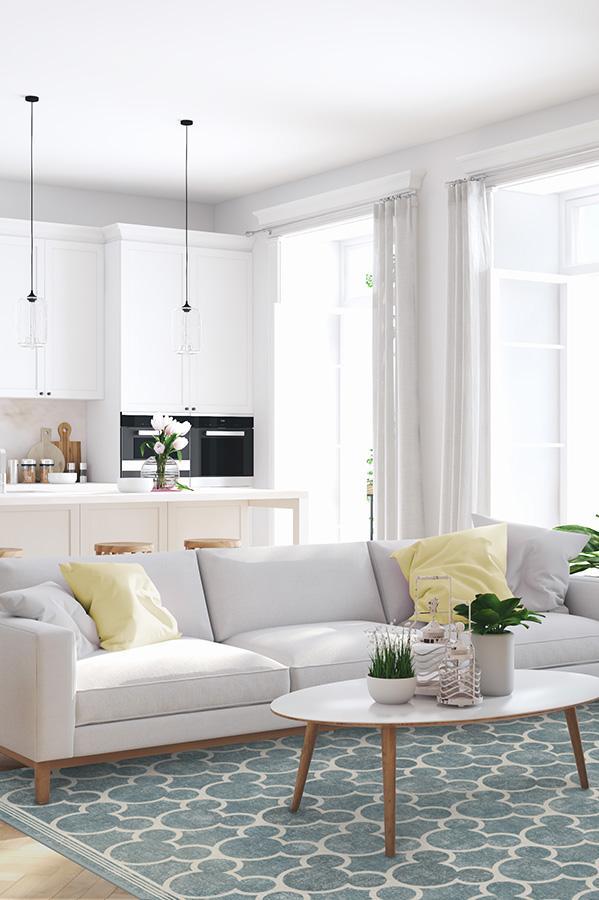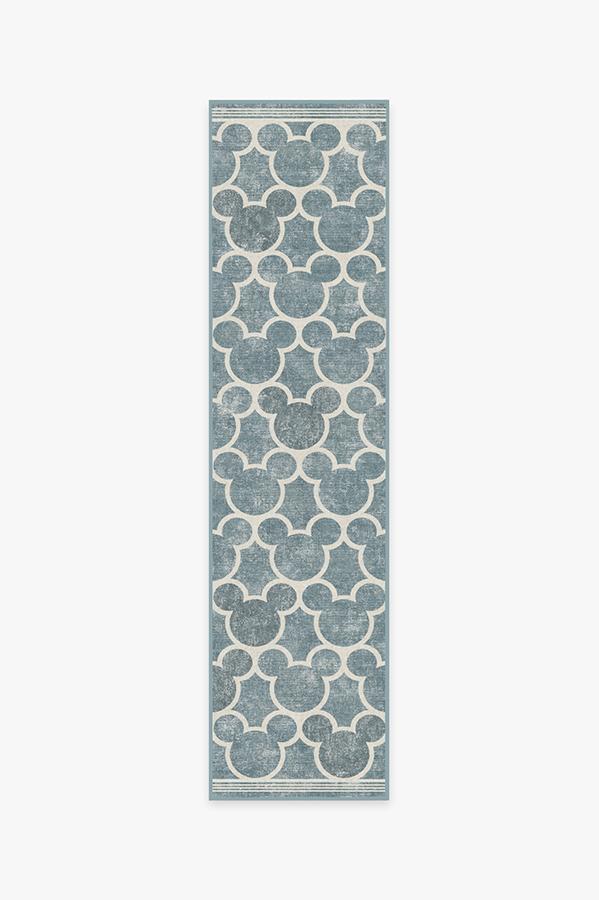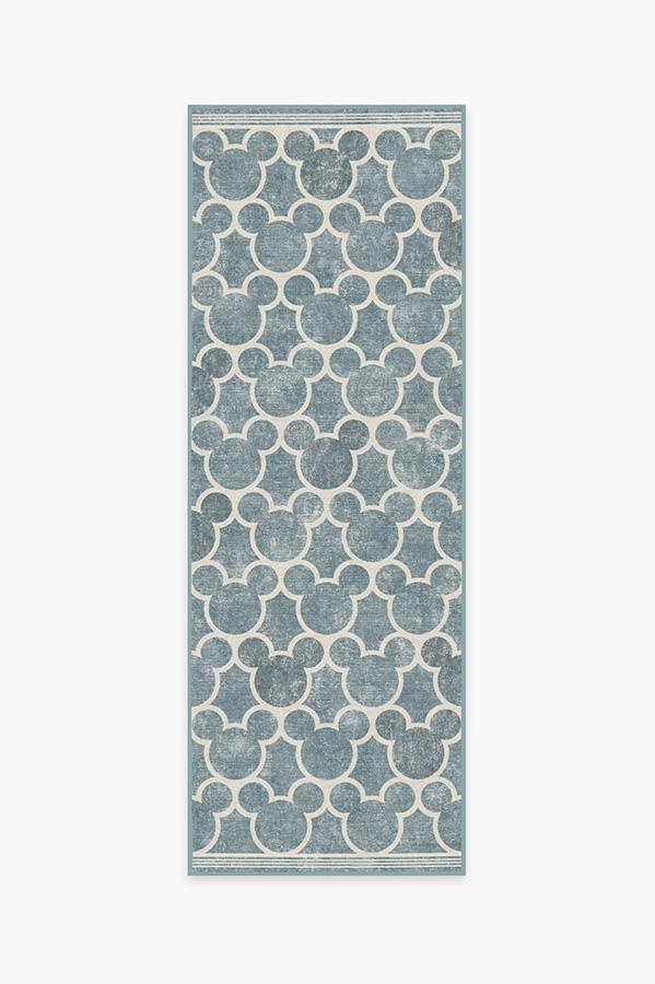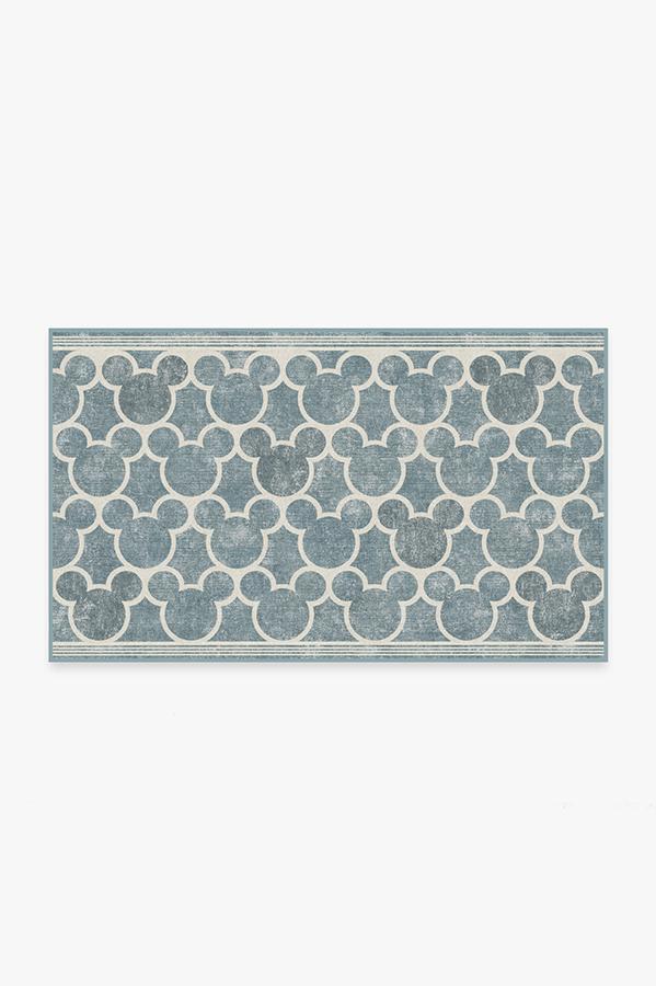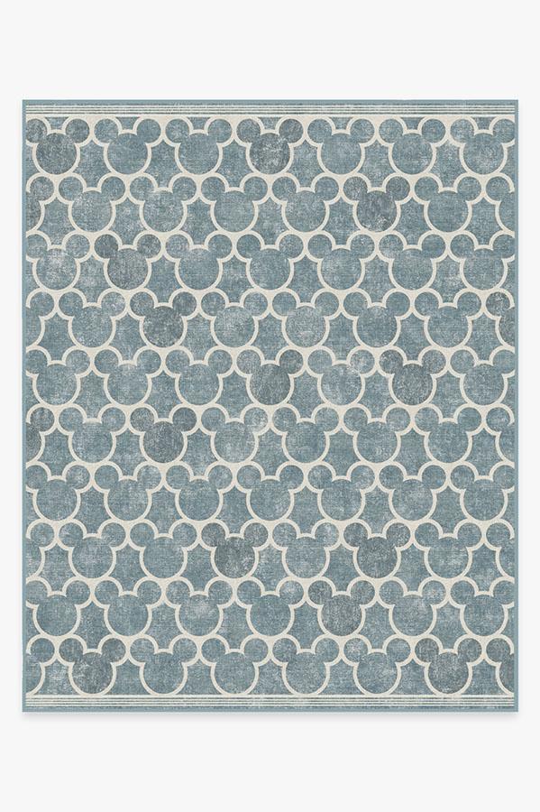 Mickey Trellis Slate Rug reimagines the classic trellis rug motif in a fun and magical way. This allover design features graphic outlines of Mickey Mouse's head, tinted in pearl against a lightly distressed backdrop of slate blue and grey green. A truly elegant rug for any Disney fan.