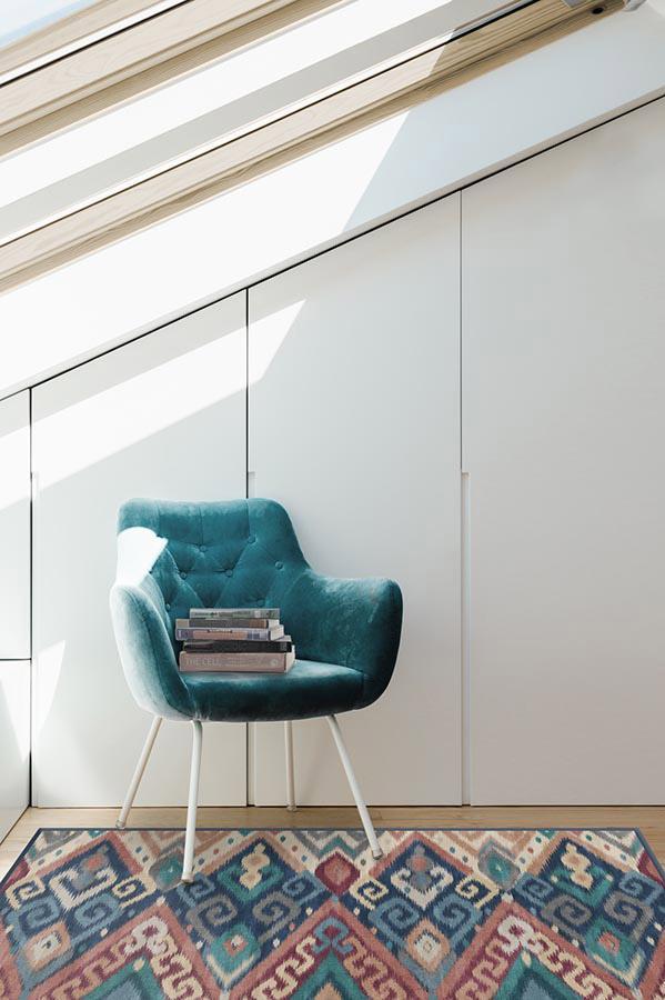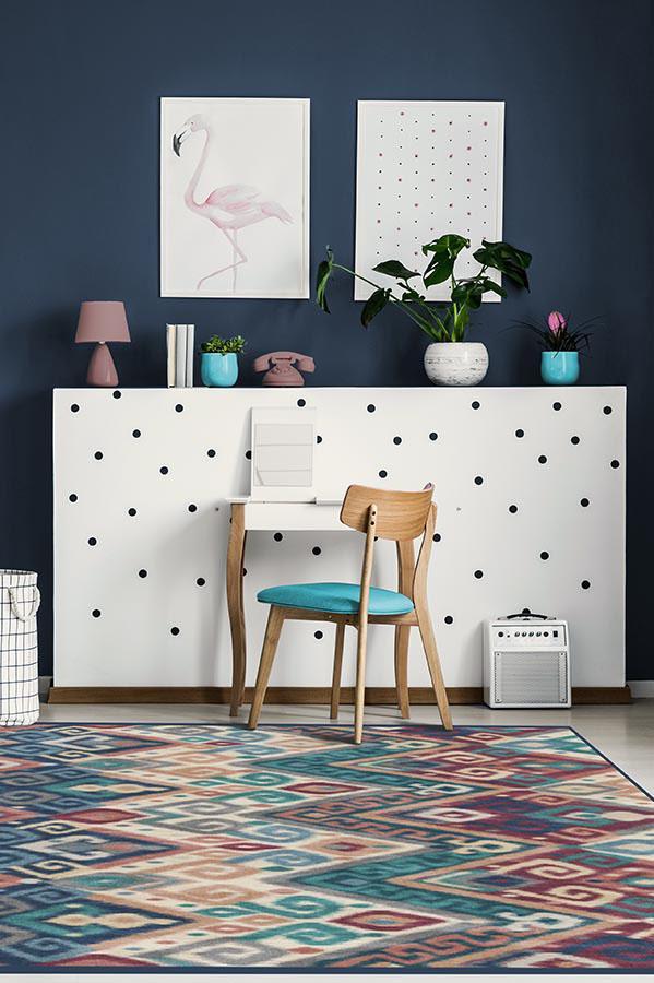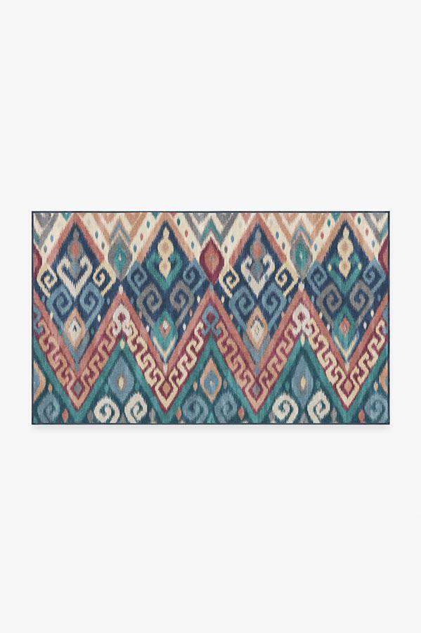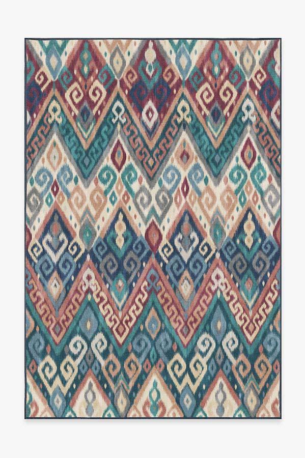 The motif of our Orissa Sapphire rug pays homage to traditional Indian kilim designs in a playful jewel-toned color palette.